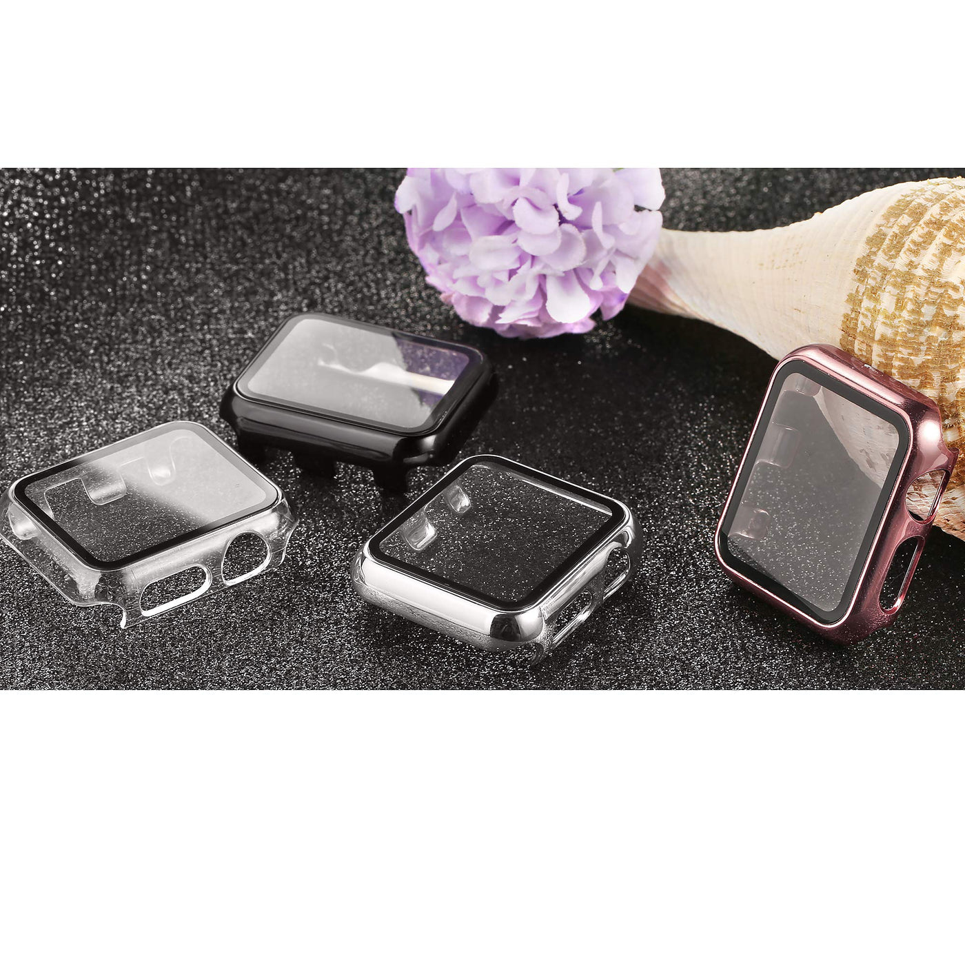 Q: How does the built-in tempered glass screen protector work?A: The built-in tempered glass screen protector is designed to protect your watch screen without being covered by adhesive, allowing you to wipe it clean easily and maintain clarity without bubbles.