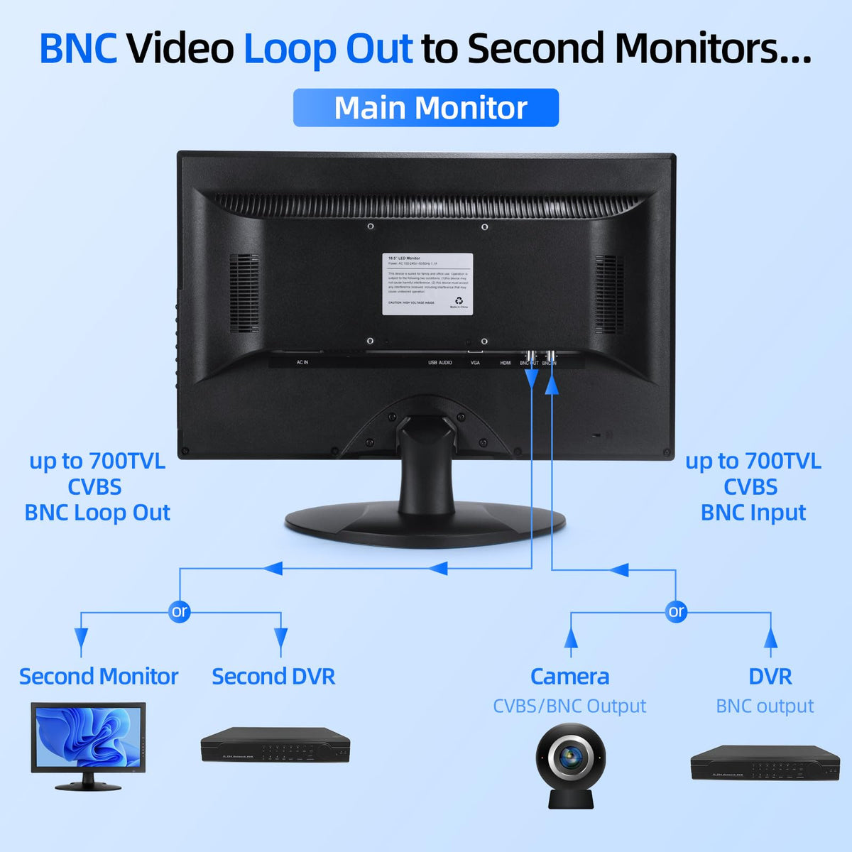 Securityvideodirect Svd 18.5 Inch 4K Security Display, 3840X2160 Hdmi Resolution, Professional Cctv Screen With Hdmi Vga Bnc Usb, Ultra Thin Led For Dvr, Home Office Surveillance System