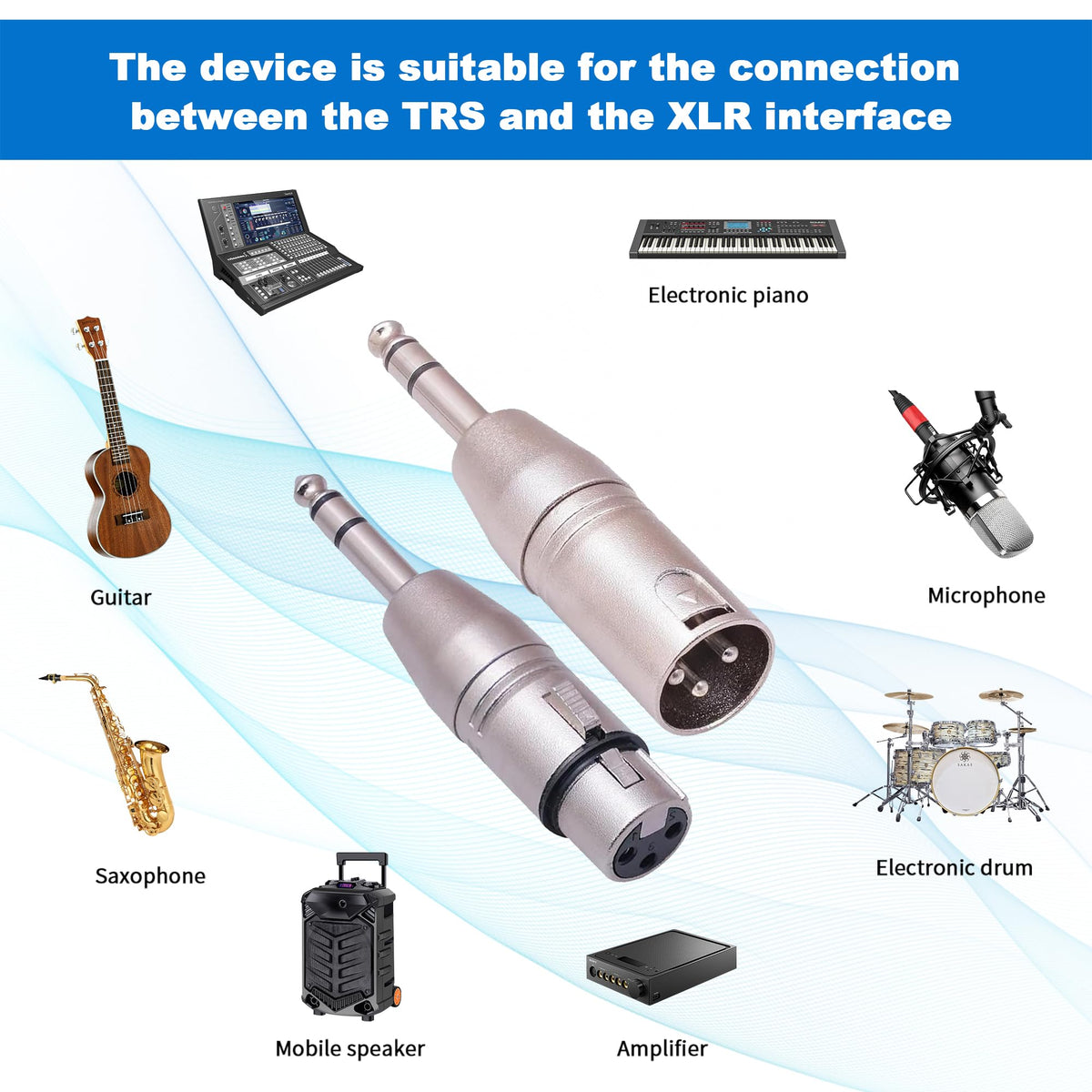 Q: Are these adapters compatible with all audio equipment?A: Yes, these adapters are compatible with a wide range of audio equipment, including professional audio gear, mixers, microphones, keyboards, and electric instruments, making them versatile for both personal and professional use.