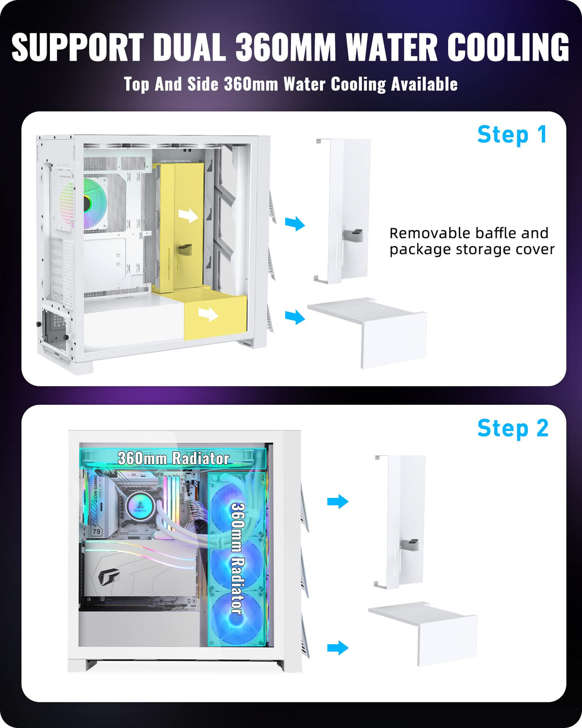 T3 White Pc Case Support Dual 360Mm Radiators Mid-Tower Computer Gaming Case Focused Cpu Cooling Up To 13 Fans Pre-Installed 1 X 120Mm Argb Fans Tool-Free(White)