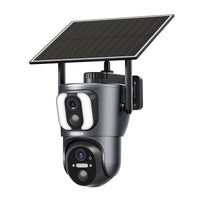 Dual Lens Linkage Solar Powered Security Camera Wireless Outdoor, 2K 360 View Dual Screen Dual Camera, Color Night Vision Two-Way Audio Ip66