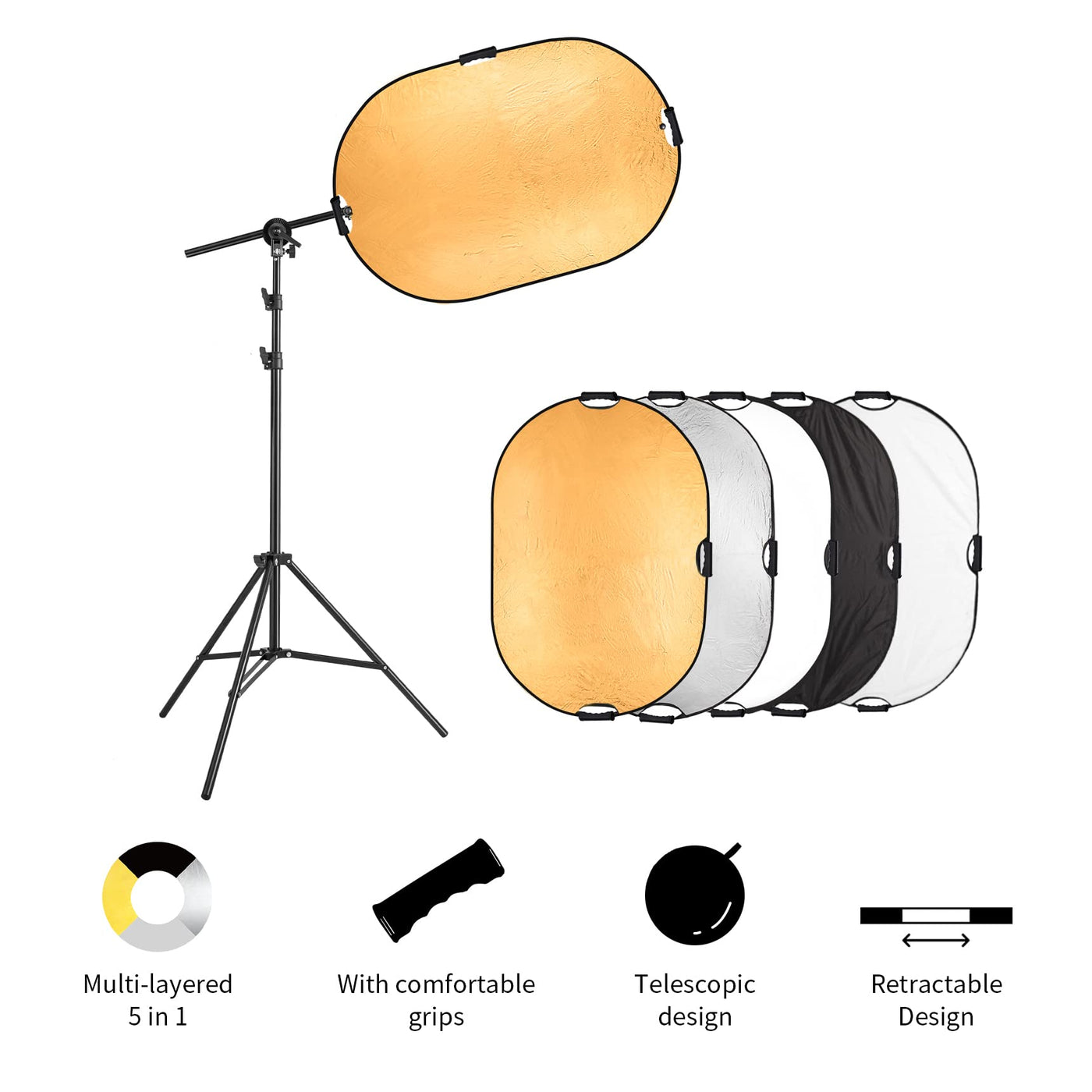 Selens Photography Reflector Stand Kit, 24X36 Inches 5 In 1 Reflectors With 78 Inches Light Stands And Extendable Holder Arm Cli
