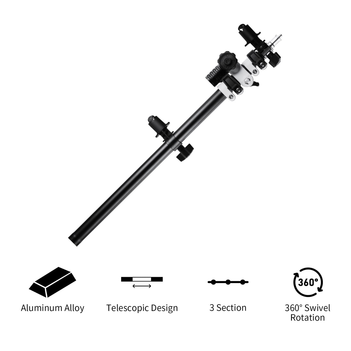 Selens Telescopic Reflector Holder Extendable Boom Arm 360 Degree Swivel With Adjustable Length For Photo Studio Product And Por