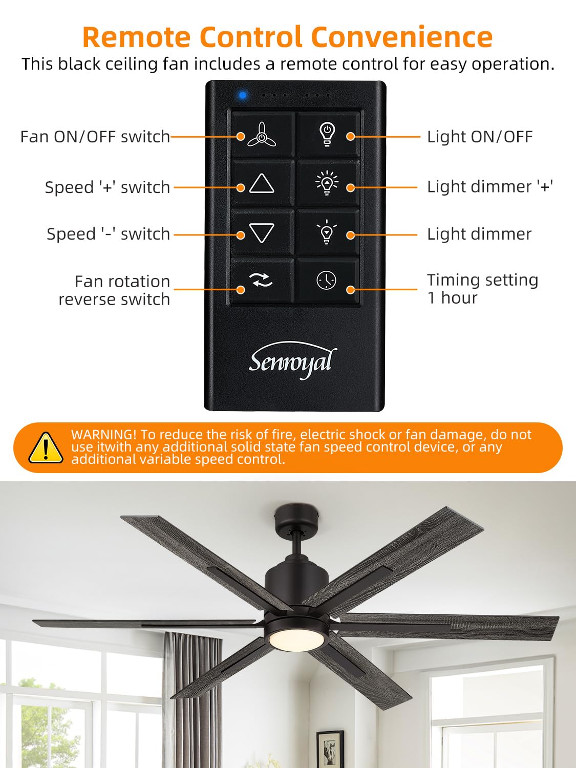 Q: Does this ceiling fan come with a remote control?A: Yes, the senroyal ceiling fan includes a remote control, allowing you to easily adjust the fan speed and light settings from anywhere in the room.