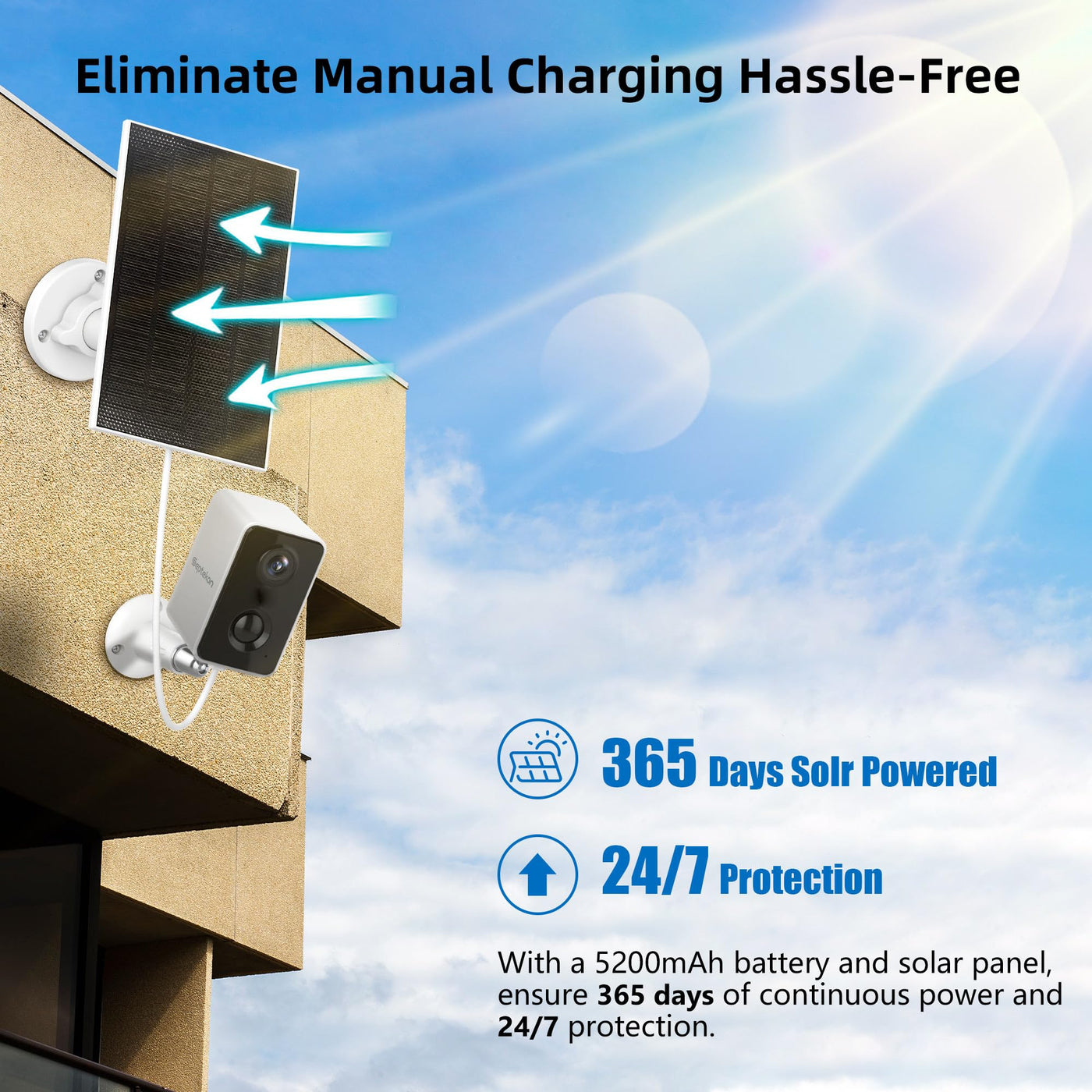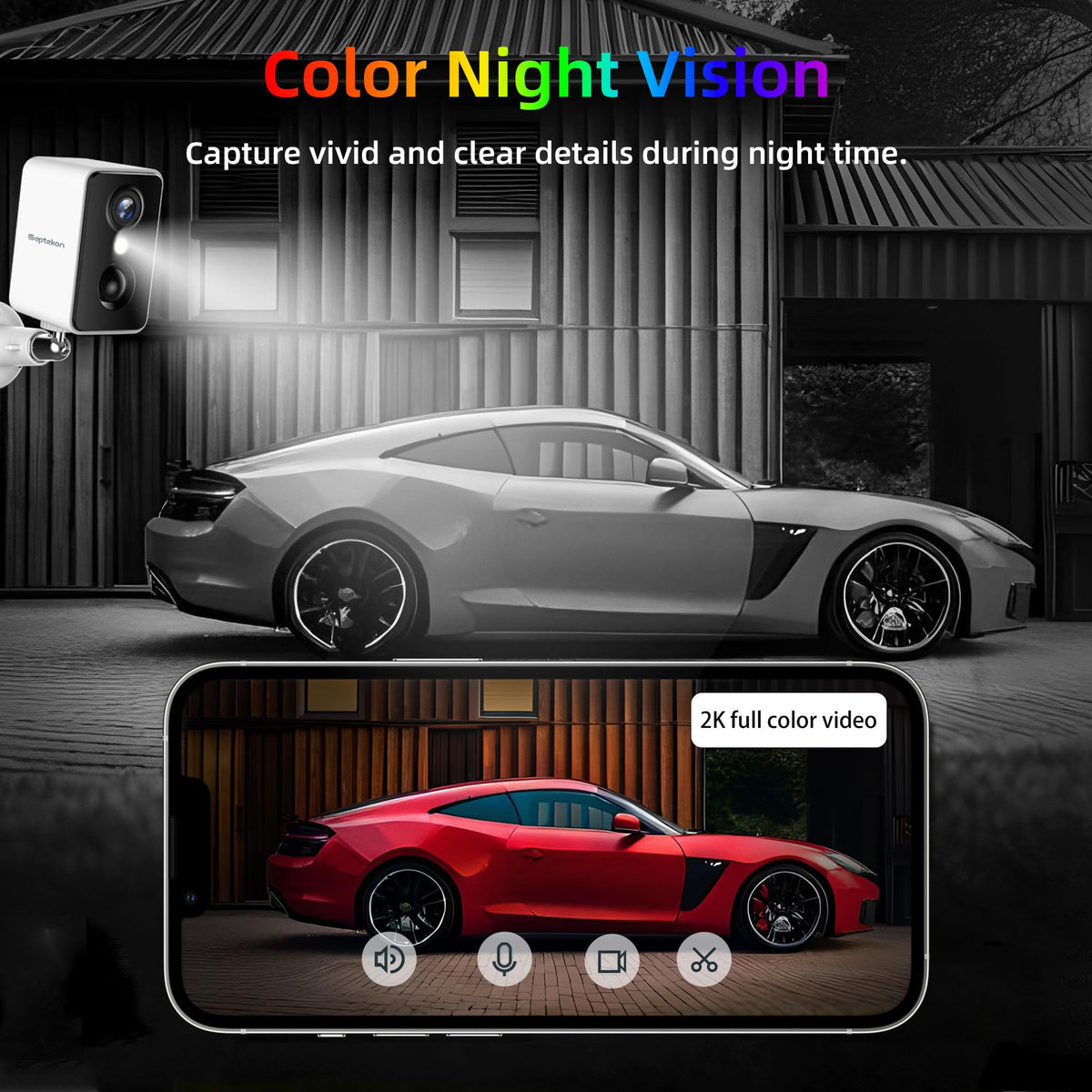 Septekon 2K Security Cameras Wireless Outdoor, Solar Camera For Home Security, Battery Powered Camera With Two Spotlights, Pir M