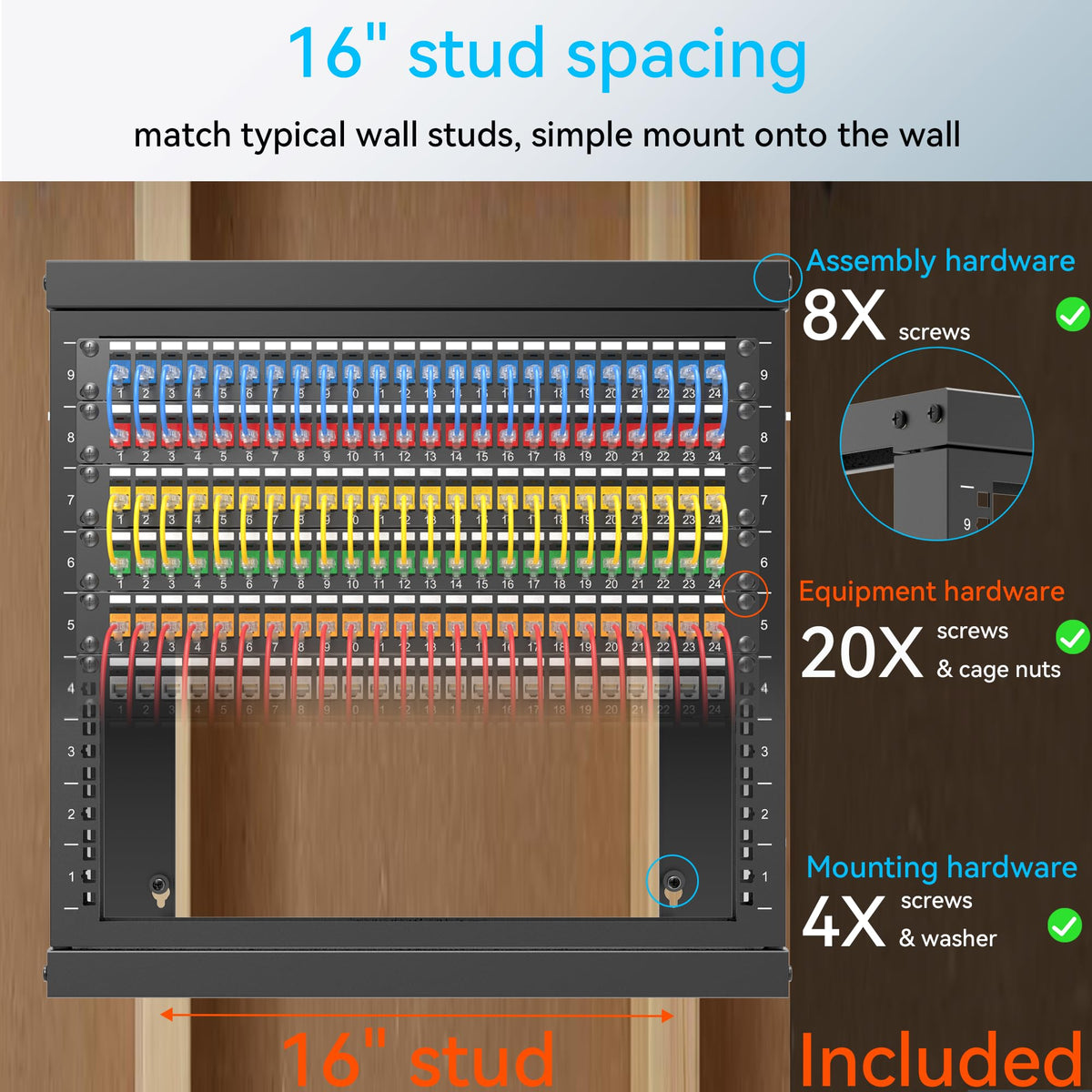 Swinging Option Of The It Rack Is Great, Making It Easy To Access The Rear Of It Or Audio Equipment For Setup, Maintenance, And Replacement. The Wall Rack Mount Hinged Door Design Makes Installation And Plug Easy. The 9U Network Rack Is Sturdy And Easy To Assemble. Wall Rack Network Is Very Suitable For Small Business Networks. The Powder Coating Of The Wall Mount 19 Inch Rack Is Consistent. The Wall Mount Data Rack Includes Additional Screws And Cage Nuts. The Open Structure Of Rack Mount Home Network Ensures Continuous Airflow.