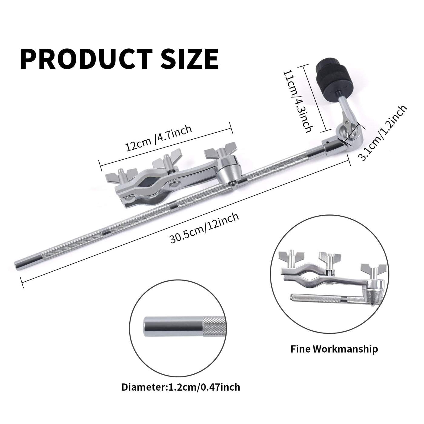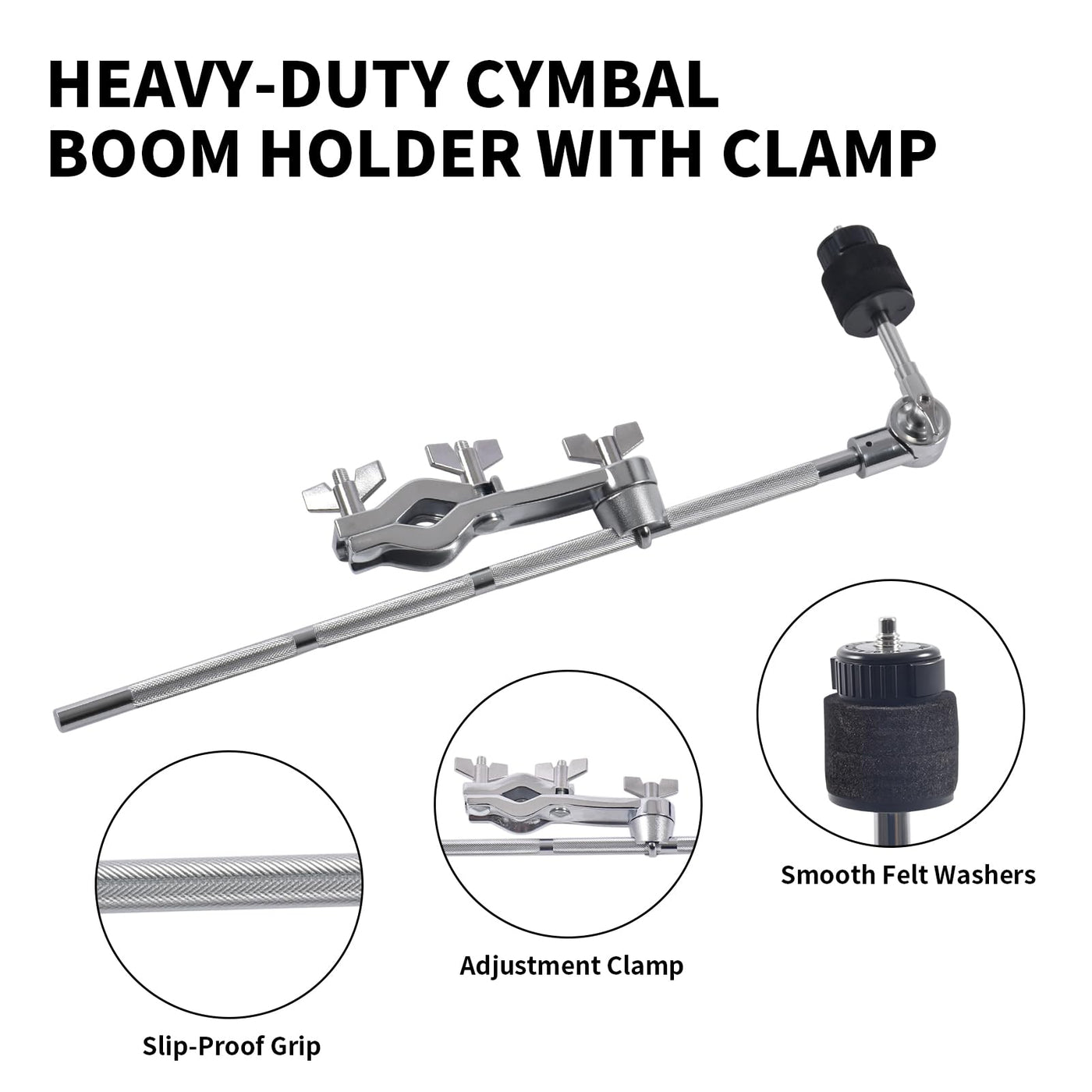 ?Sturdy & Stable?Our Cymbal Boom Extension Arm Is Made From High-Grade Steel, This Cymbal Boom Arm Ensures Maximum Durability With A Corrosion-Resistant Finish. The Counterweight Design Provides Ultimate Stability, Keeping Your Cymbal Securely In Place During Intense Play. | ?Add Your Cymbals?The Cymbal Extension Arm Attachment Is A Great Part To Add Cymbal, Cowbell Or Tambourine Without Adding Another Cymbal Stand Tripod To Your Set Up. Give You More Playing Experience. | ?Universal Compatibility?Features A Strong Mounting Clamp That Easily Attaches To Any Drum Stand, Making It Ideal For Percussion Instrument Kits. The Cymbal Boom Extension Arm Clamp Provides Extra Reach, Giving You More Positioning Freedom. | ?Portable & Easy Setup?Lightweight Yet Heavy-Duty, This Cymbal Boom Arm Is Easy To Install And Disassemble, Making It Great For Gigs, Rehearsals, Or Home Practice. Take It Anywhere-Indoor Or Outdoor-Without Hassle! | ?All-Levels Drumming Essential? Whether Youre A Beginner, Student, Or Pro, This Cymbal Boom Extension Arm Clamp Holder Is A Must-Have Accessory For Enhanced Playability. The Slip-Proof Grip Ensures Secure Positioning, While The Smooth Felt Washers Protect Your Cymbals From Damage.