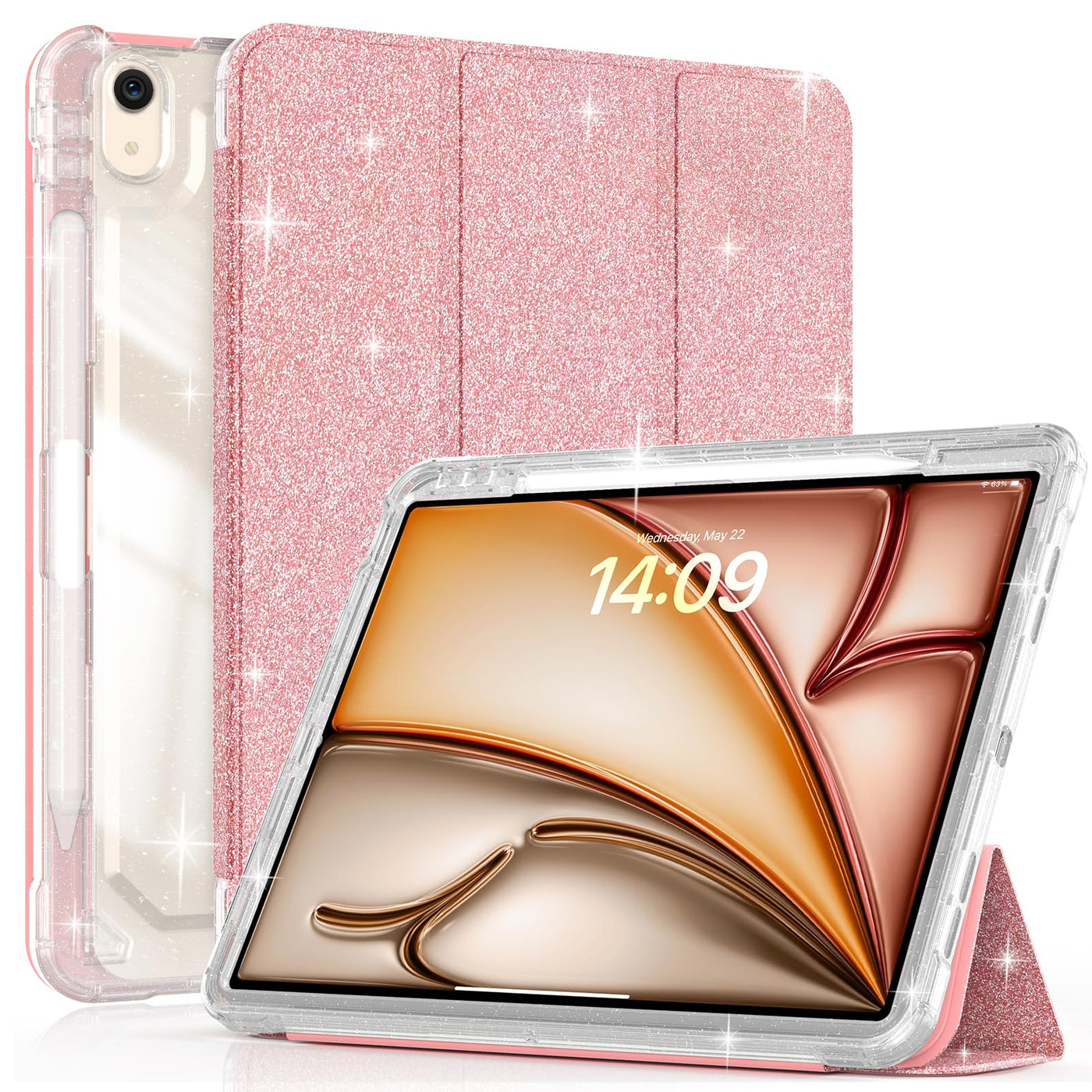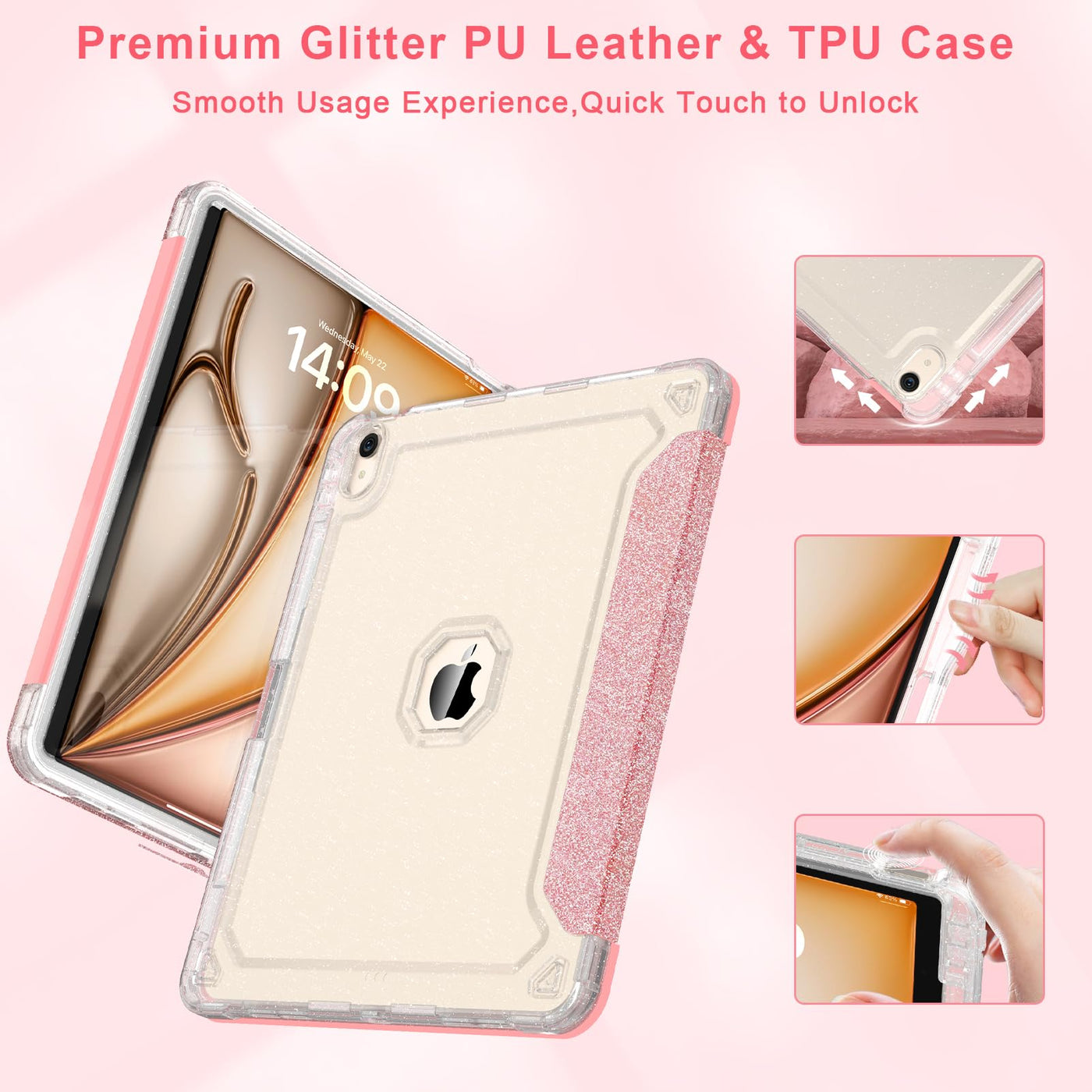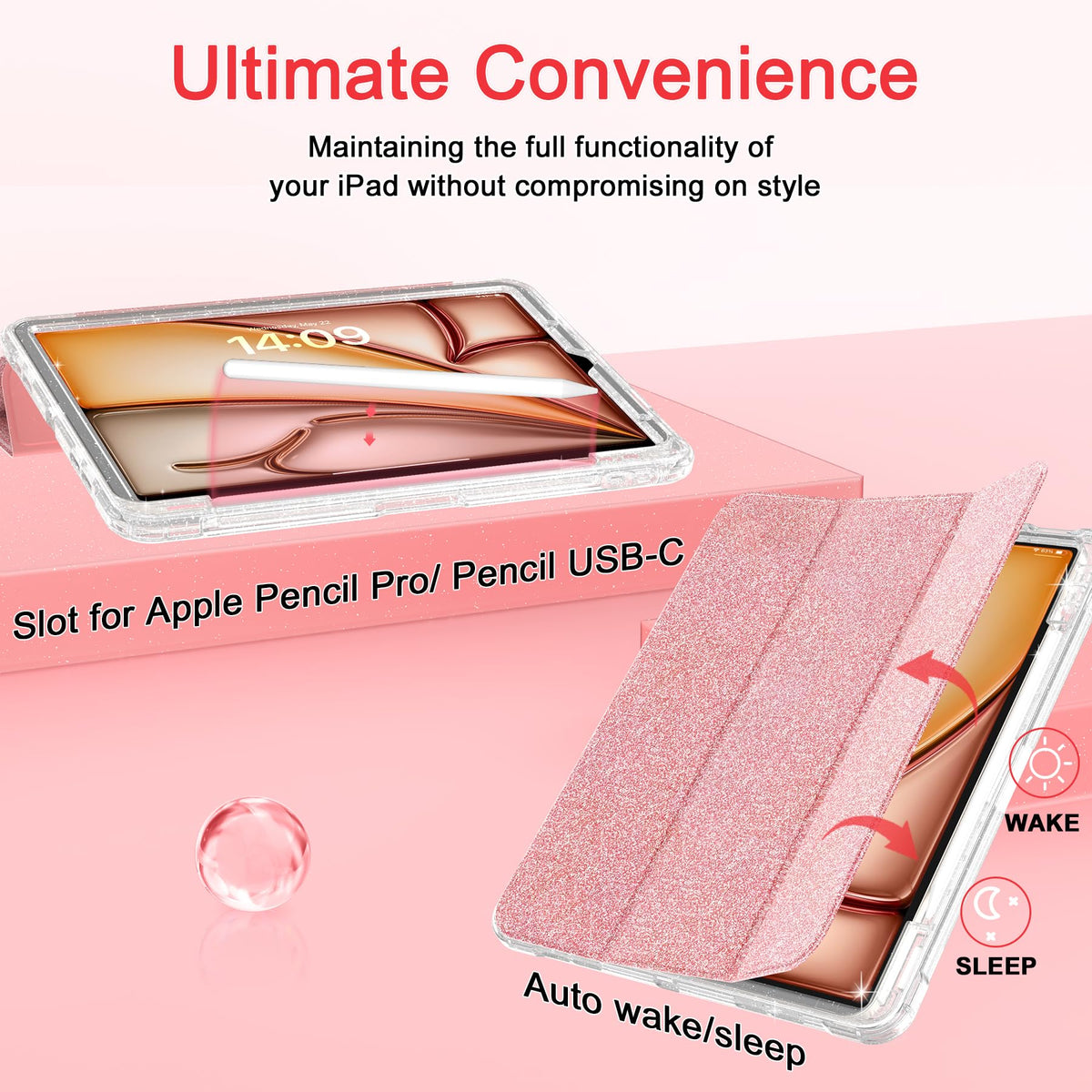 Sevrok Glitter Case For Ipad Air 13 Inch M2 (2024),Screen Protector With Pencil Holder,Sparkle Glitter Leather Trifold Stand Mag