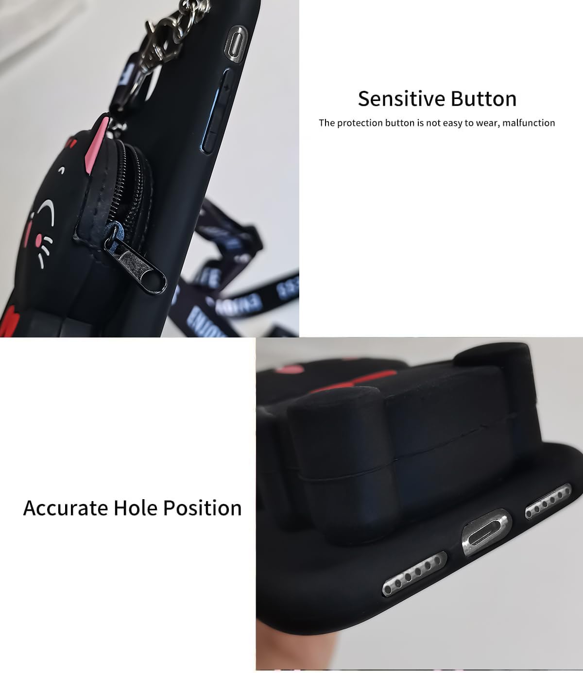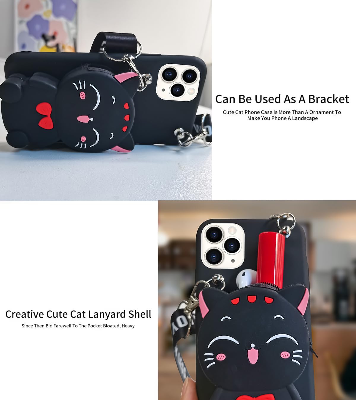 Sgvahy Wallet Case For Iphone 12 Mini Case Cute Cat Iphone Case With Long Lanyard Funny Phone Case Card Holder 3D Phone Case Kaw