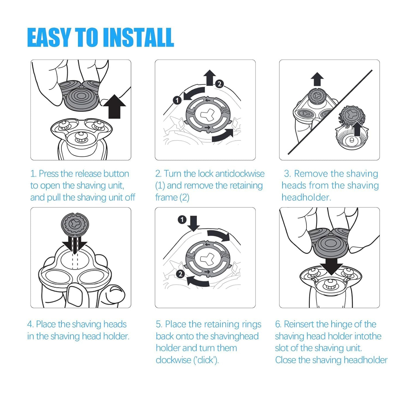 Q: Are the SH60 replacement heads compatible with all Philips Norelco shavers?A: The SH60 replacement heads are specifically designed for compatibility with Philips Norelco Series 6000 shavers, including models such as S6810/82, S6850/85, and S6880/81. Please check your shaver model to ensure compatibility.