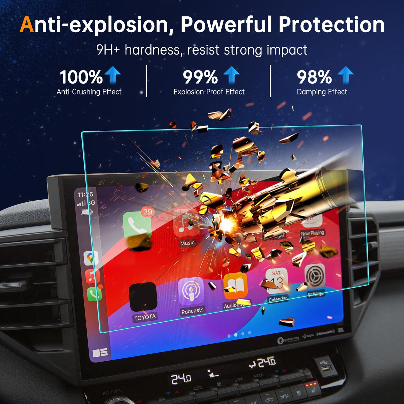 Advanced Anti-Explosion Effect, Strengths The Hardness To 9H, Enables To Mitigate The Wallop And Prevent From Scratching