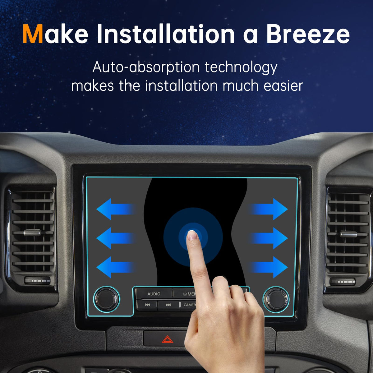 Q: How do I install the SHAOHAO screen protector?A: Installation is straightforward; simply align the screen protector with your Nissan Frontier's screen, apply it gently, and the automatic absorption feature will help it adhere without bubbles. Ensure the screen is clean before application.