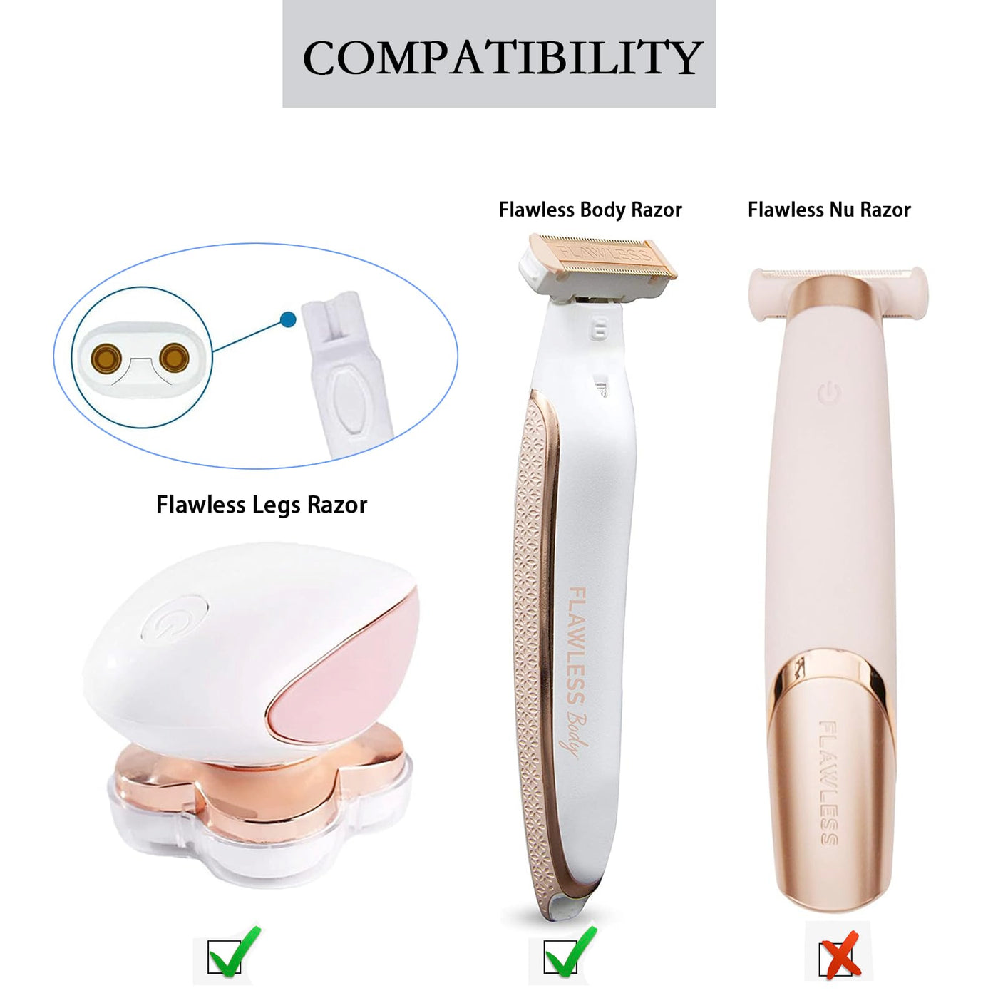 Q: Is this shaver charger compatible with other brands?A: No, this USB charger is specifically designed to be compatible only with the Flawless Body rechargeable bikini trimmer and Flawless Legs women's hair remover. Please ensure that your device has a compatible charging interface to avoid any issues.