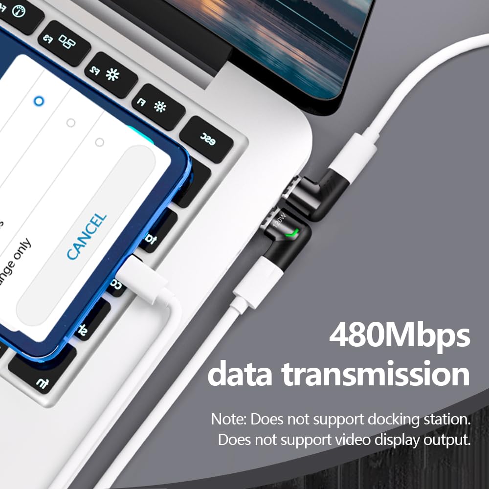 Pd 100W Fast Charging And 480 Mbps Data Transmission: Sheeast Magnetic Usb C Adapter Right Angle 2 Pack 5Pin Is Up To Support 100W Pd Quick Charge And 480Mbps Data Transmission. Note: Not Support Video Output.180 Degree Reversible And Avoid Accidental Falling: Sheeast 2 Pack Usb C Magnetic Adapter 90 Degree 5 Pins Could Be Reversible 180 Degree To Be Easy To Use. The Magnet Adsorption Design Could Prevent The Notebook From Accidental Cable Pulling That Could Cause The Laptop Falling Off From Desk. Magnetic Design Supports Automatic Adsorption, Reducing Plugging, Interface Protection. Portable And Durable: Usb C Magentic Adapter Right Angle 2 Pack Is Travel Friendly With Portable And Compact Design. It Is Lightweight And Durable. The Led Light Indicates That The Usb C Magnetic Adapter Is Connected To The Laptop And Powered On. It Will Not Change Color And Will Not Turn Off.Magnetic Usb C Adapter Right Angle 2 Pack: Compatible With Most Usb C Devices Such As Laptop Charging Via Usb C Interface. Sheeast Usb C Magnetic Adapter 2Pack Right Angle 5Pins Could Be Used On Your Macbook And Will Not Hinder The Port Next To It. The Size Of Our Magnetic Usb C Adapter Is Just Right And Will Not Affect The Use Of Other Ports.Best Service For You: Provide 12-Month Warranty. Welcome To Get In Touch With Us If You Have Any Questions During The Use Of Sheeast Magnetic Usb C Adapter Right Angle 2 Pack 100W Fast Charging.