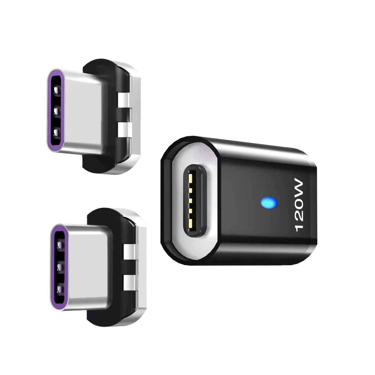 Sheeast Usb C Magnetic Adapter Straight, Magnetic Usb C Adapter 2 Tips 120W Fast Charging 5Pin 480Mbps Data Transmission, Blac