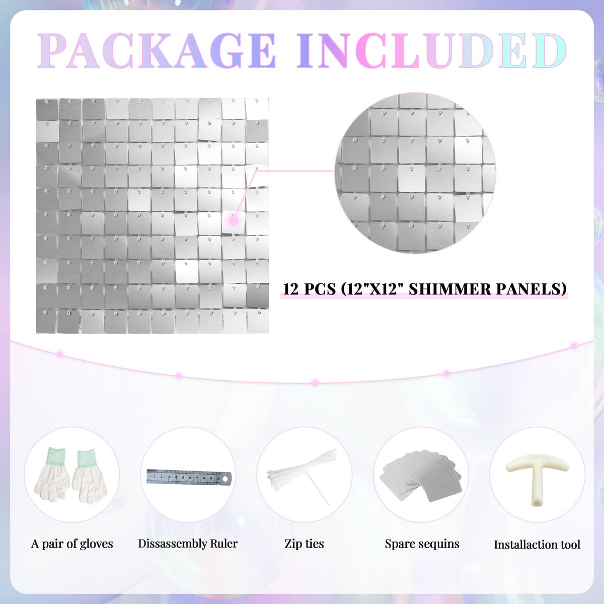 Make Your Special Day Shine With Our Shimmer Wall Backdrop Panels! Our Store Offers The Perfect Shimmer Wall For The Decoration Of Your Wedding, Party, Home Or Restaurant. Our Shimmer Wall Panels Are Made With High-Quality Materials, And Are Easy To Clean And Use. Whether You'Re Setting Up A Sequin Backdrop For A Wedding, Baby Shower, Birthday Party, Engagement, Halloween, Christmas, New Year, Or Simply Wanting To Add Some Glamour To Your Home, These Shimmer Wall Backdrops Are Perfect For You. Package Note: 1.12 Individual Panels, With Each Panel Measuring 12 Inches (L) X 12 Inches (W) 2. 30 Pcs Zip Ties 3. A Bag Of Replacement Sequins. 4. A Pair Of Gloves Our Sequin Wall Panels Are Available In A Variety Of Colors, Including Gold, Silver, Light Gold, Black, Red, Rainbow, Pink Iridescent, Rainbow Silver. These Panels Are Durable And Can Be Used Multiple Times For Different Occasions, Both Indoor And Outdoor. All Guests At Your Party Will Want To Take Photos In Front Of The Shimmering Backdrop And Share Photo. Make Your Party Unforgettable With Our Shimmer Wall Backdrop Panels And Watch As Your Event Fills With Praise.