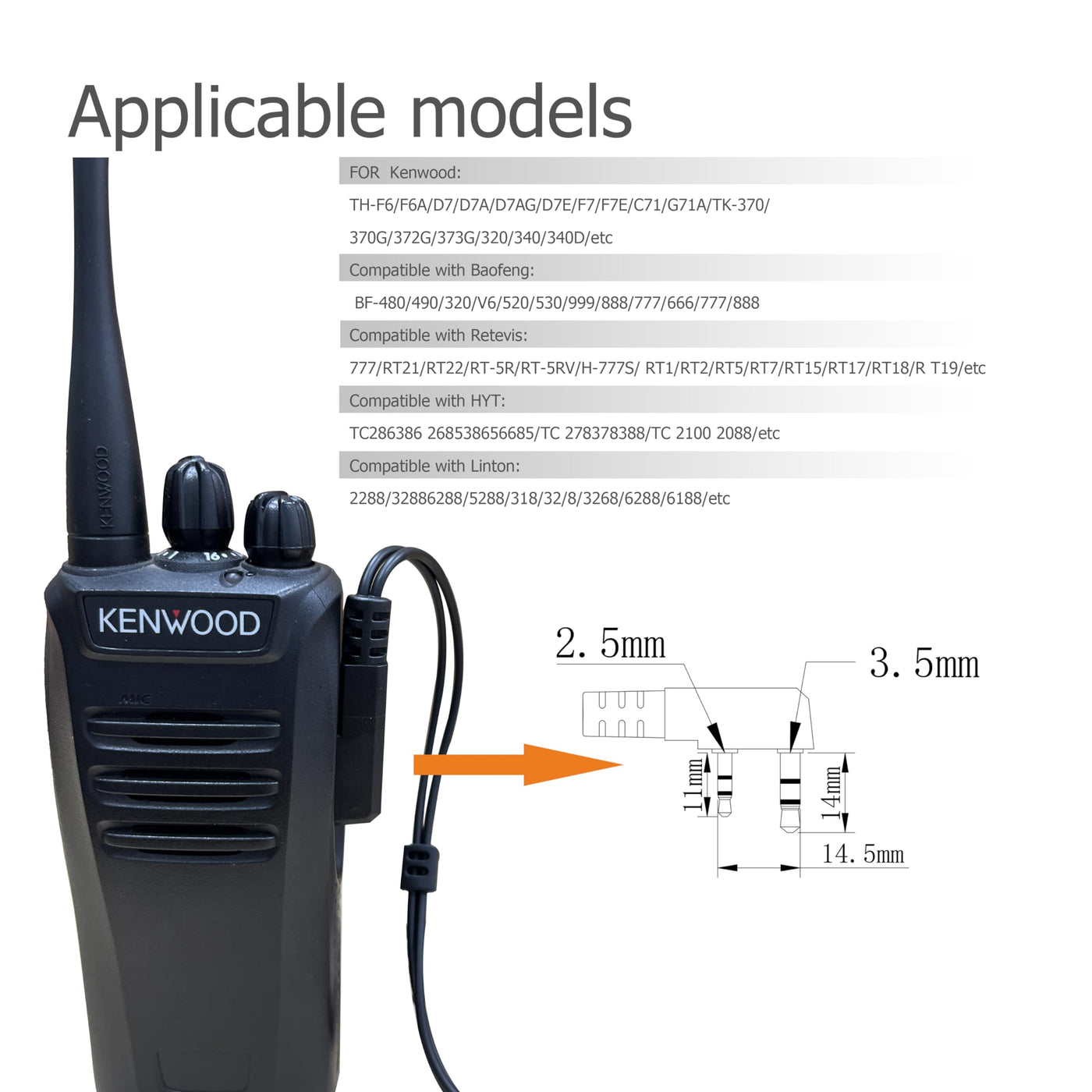 Shon Radio Headset With Mic Is The Perfect Accessory To Stay Connected During Any Activity, From Outdoor Hikes To Construction Sites. Ear Piece Walkie Talkie Set High-Quality Microphone And Speaker That Deliver Crystal-Clear Sound For Effortless Communication Even In Noisy Environments. The Earbuds Feature Ergonomic Design And Soft Ear Pads Ensure A Comfortable Fit Even During Prolonged Use. Made Of High-Quality Materials, The Headset Is Durable And Ideal For Your Walkie Talkie Accessory. Designed To Be Compatible With A Wide Range Of Walkie-Talkies And Two-Way Radios Including Kenwood, Baofeng, Retevis Brands, This Headset Ensures Maximum Versatility For Any Communication Need. Stay Connected On Any Adventure With This High-Quality Shon Walkie Talkie Earpiece.