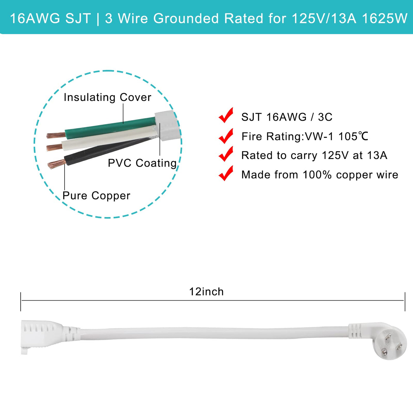 Q: Is this extension cord safe for indoor use?A: Absolutely! The Short Power Extension Cord is produced to meet safety standards for American power cords and is strictly tested before shipment to ensure safety. It is made of high-quality SJT 16AWG wire, ensuring reliable performance for indoor use.