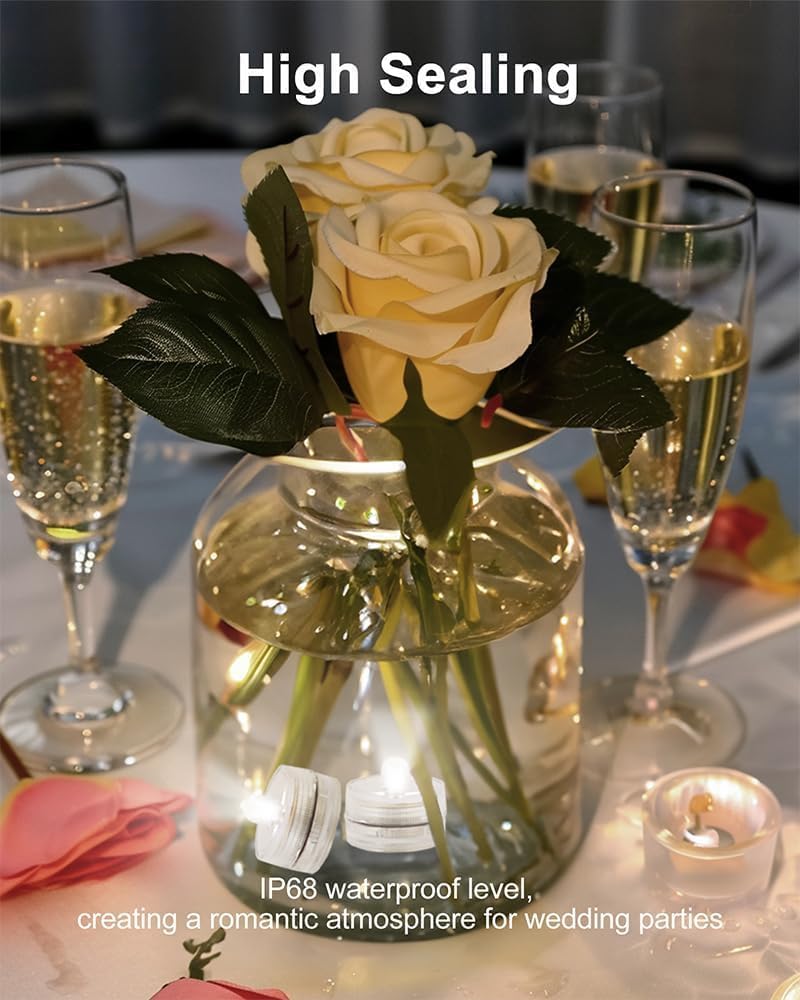 Q: What applications are best for using these submersible LED lights?A: These versatile lights can enhance various settings, including wedding centerpieces, party decorations, floral arrangements, fish tanks, ponds, and pools. They create a warm ambiance without the mess of traditional candles.