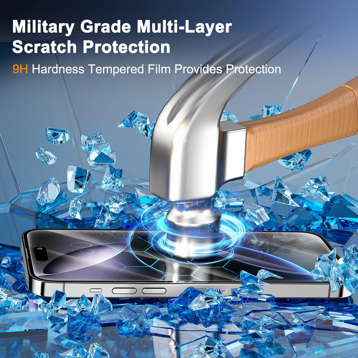Screen Protection Compatibility: We Offer 3 Pcs Tempered Glass Screen Protector With Camera Protector, Carefully Designed For Iphone 16 Pro 6.3 Inch, Incompatible With Any Other Iphone Models, Ensure Perfect Fit, Please Check Your Model Before Purchase | Anti-Scratch, Anti-Fingerprint, High Sensitivity: 9H Hardness Iphone 16 Pro Screen Protector Is Specially Tempered To Strengthen The Surface Of The Screen Protector To Withstand External Scratches And Impacts More Effectively And Reduce Screen Damage, Rounded Edges Are Integrated To Maintain The Original Response Sensitivity To Keep Typing Fast And Accurate And Gaming Videos Smooth | High Transparency And Clarity: The Thickness Of The Screen Protector For Iphone 16Pro Only 0.33Mm, And The Surface Is Uniquely Treated With A Light Transmittance Rate Of Over 99.99% Optical-Grade Transparency, Enhancing The Visibility Of The Screen And Maintaining The Original Hd Transparent Viewing Experience, Which Is More Intuitive And Clear | Night Ring Shooting Lens Film: Camera Lens Protector Made Of 9H Hardness + Tempered Glass, Which Protects The Entire Lens From Drops, Impact Scratches And Peeling Off. Upgraded Black Night Circle Design Applies During Night Shooting Without Interfering With The Flash, Capturing Every Detail Clearly Thus Guaranteeing The Original Picture Quality Of Photo And Video Quality | Easy Instaallation: The Screen Protector Comes With Separate Precision Cleaning Kit That Allows You To Easily Install Apps And Remove It Without Residue And Without Worrying About Air Bubbles. Whether You Are Playing With Your Kids Or Outdoors, You Can Enjoy Your Time Without Worrying About Your Iphone Being Broken
