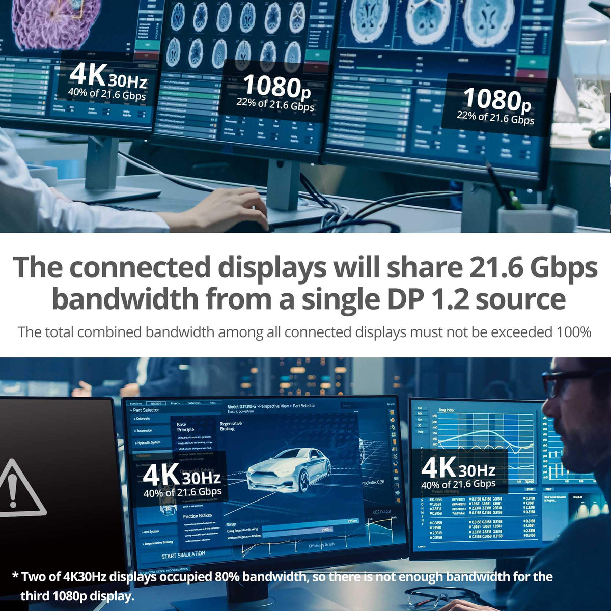 Siig 3 Port Displayport To Displayport Mst Hub 4K Uhd 1X3 Dp To Dp Muti Monitor Splitter Multi Stream Transport (Mst) Techno