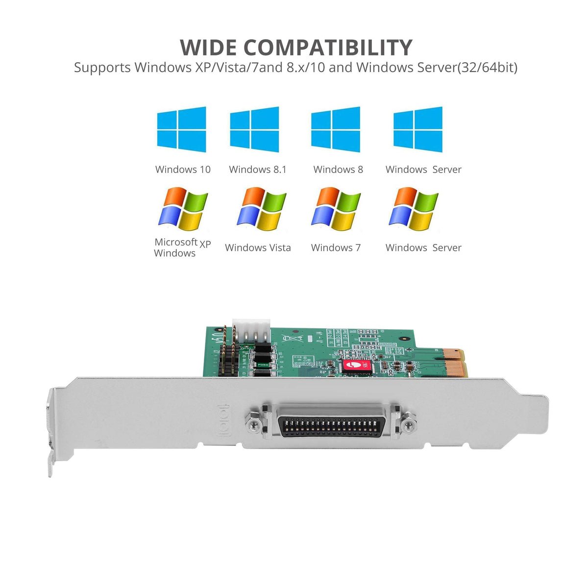 Specification: Chipset:Aasix Mcs99100 Compliant With Pci Express Base Specification 20 Supports Pcie Power Management Data Transfer Rate: Up To 921Kbps Flow Control: Hardware And Software Stop Bits: 5, 6, 7, 8 And 9-Bit Serial Format On-Chip 256 Byte Depth Fifos In Transmit, Receive Path Of Each Serial Port Serial Power Output: 0V 5V 12V, Configured By Jumper Form Factor:Afull Profile Low Profile Product: Dimensions (With Full Height Bracket): 366 (W) X 087 (H) X 472 (L) Weight: 010 Lbs Color: Green Connectors: 4 X 9-Pin D-Sub, Rs232 Serial, Male (Via Fan-Out Cable) 1 X 4-Pin, Molex Mini-Power Connector 2 X 8-Pin Header, A Jumper For Power Output Environmental Conditions: Operating Temperature: 32 To 140 Degrees F Storage Temperature: 14 To 158 Degrees F Relative Humidity: 5 To 90% Rh (Non-Condensing) Taa Compliant Certificationsstandards: Fcc, Ce, Rohs Warranty: 3 Years Limited Country Of Origin: Taiwan Compatibility Note: Replaces Part # Jj-E40011-S4 Requirements Pci Express-Enabled System With An Available Pci Express Slot Windows 10 8X 7 Server 2016 (32-64-Bit) 2012 R2 2012 (32-64-Bit) 2008 R2 2008 Package Contents Dp Cyberserial 4S Pcie Board Low Profile Bracket 4-Port Fan-Out Cable (Dfp-36Pin) Y-Split Power Cable Voltage Jumper (4Pcs) Driver Cd User Manual