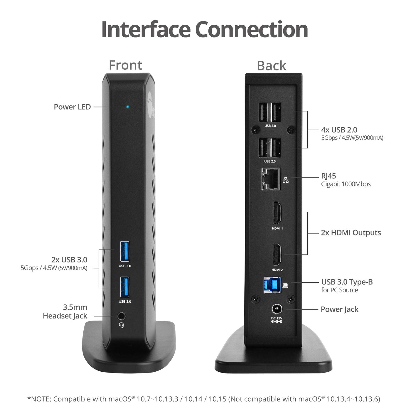 Specifications:Chipset Displaylink Dl-3900Os Compatibility Windows&Reg; 10, Mac Os &Reg; 11 Or Newhdmi 1.4 1080P @60Hz, 2 Portsresolution 1080P / 1080I / 720P / 480Pusb 3.0 2X Type-A, Data Transfer Rate Up To 5Gbps And Compatible With Usb 2.0 Specificationusb 2.0 4X Type-A, Data Transfer Rate Up To 480Mbps And Compatible With Usb 1.1 Specification5.1 Channel Surround Sound From Hdmi Output2 Channel Stereo Audio From 3.5Mm Audio Jackdisplay Modemirror, Extended, Primary Video Modespower Adapterinput Ac 100-240V / 50-60Hzoutput Dc 12V/2Aul Listed E221556 /Level: Vifcc, Ce, Rohswarranty: 2 Years Limitedcountry Of Origin: Thailandsystem Requirements:Desktop Or Laptop Computer With An Available Usb 3.0 Type-A Portwindows&Reg; 10 (32-/64-Bit) / 8.1 (32-/64-Bit) / 8 (32-/64-Bit) / 7 (32-/64-Bit)Macos&Reg; 11 / 10.15 To 10.10*Package Contents:Dual Head Full Hd 1080P Hdmi Video Docking Stationpower Adapter 12V/2Ausb 3.0 A To B Cabledriver Cduser Manual