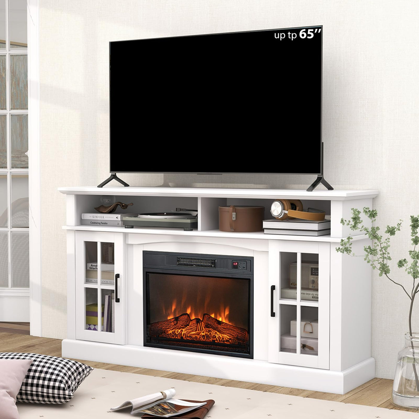 Simoe 58 In Tv Stand With 23 Inch Fireplace, Electric Fireplace Tv Console For Tvs Up To 65, Entertainment Center/W 2 Cabinets &