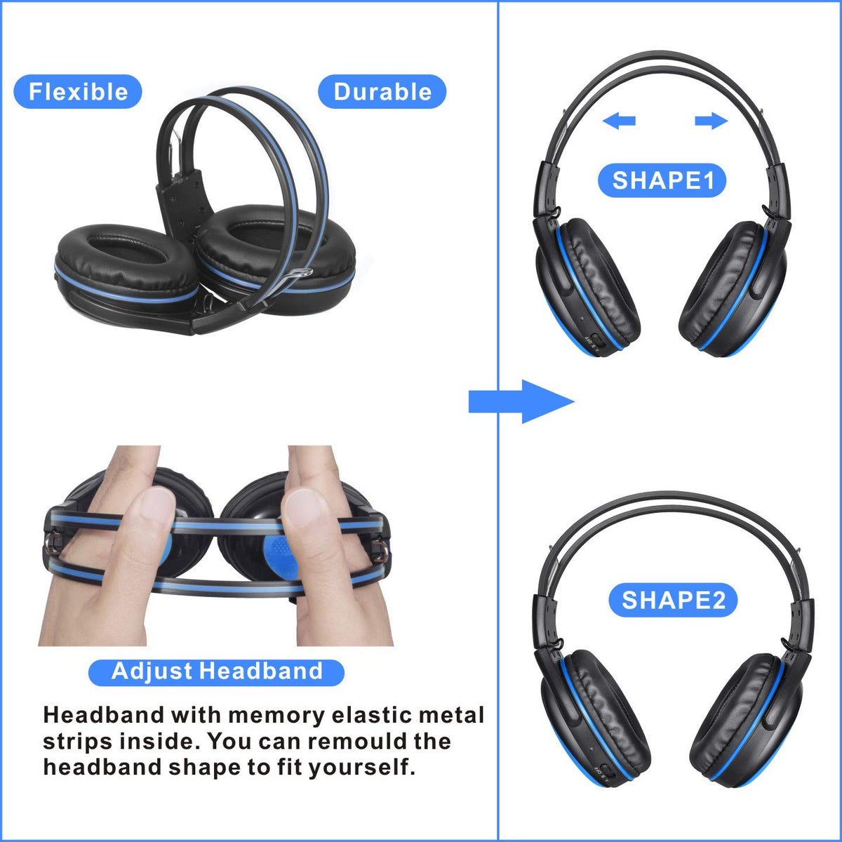 Have Any Problem? Please Email To Support1@Simolio.Com. We Are Confident To Get One Good Solution For You.Important!!!1.Pls Check Ir Sensor Frequencies Of Your Car Dvd Players And Make Sure They Are Universal Before Purchasing. (Consult Your Dvds Manual Or Manufacturer. Universal Ir Frequencies: Channel A: L/2.3Mhz,R/2.8Mhz; Channel B: L/3.2Mhz,R/3.8Mhz). If You Dvds Are Non-Universal, It Will Cause No Sound, Audio Cuts, Only Hear At One Side.2.These Headphones Are Designed With Volume Limited Function And Additional Sharing Jack For The Kids.3.The Simolio Ir Wireless Headphones Are The Perfect Traveling Companion For The Family On The Go! Compatible With All Universal Car Dvd Players.They Can Also Be Used Outside The Car With The Included Aux Cable For Smart Phones, Tablets, Mp3 Etc, Or Equipped With An Ir Transmitter For Watching Tv At Home.4.Pls Use 2*Aaa Premium Alkaline Batteries. Not Suggest To Use Rechargeable Ni-Mh Battery.5.Pls Pay Attention To The Ir Transmitting Angle And Distance. Sound Will Be Cracking If Too Far Away, Or Not In Sight Of Ir Transmitter, Which Is Limitation Of The Ir System Type, Not The Product Itself. The Best Audio Signal Will Be Obtained If You Sit Directly In Front Of The Monitor Within 6 Feet.If You Sit On Either Side Of The Monitor You Can Expect The Same Great Reception Within 35 Degrees To The Left Or The Right Of The Monitor.6.There Are 2 Channels Option For The Simolio Ir Headphones. Set Each Dvd On A Different Channel, And The Headphone To The Channel Of The Dvd You Would Like To Listen To.7.The Headband Incorporates Memory Elastic Stainless Steel Strips Inside, You Can Remould The Headband Shape To Fit You Better,Or Adjust The Wearing Angle To Make The Headphones Fit Snug On Your Ears.8.Automatic Shut Off Function Prevents Batteries From Draining When Left On. Pls Switch It Off First And Then Switch To A/B When Next Time To Use.