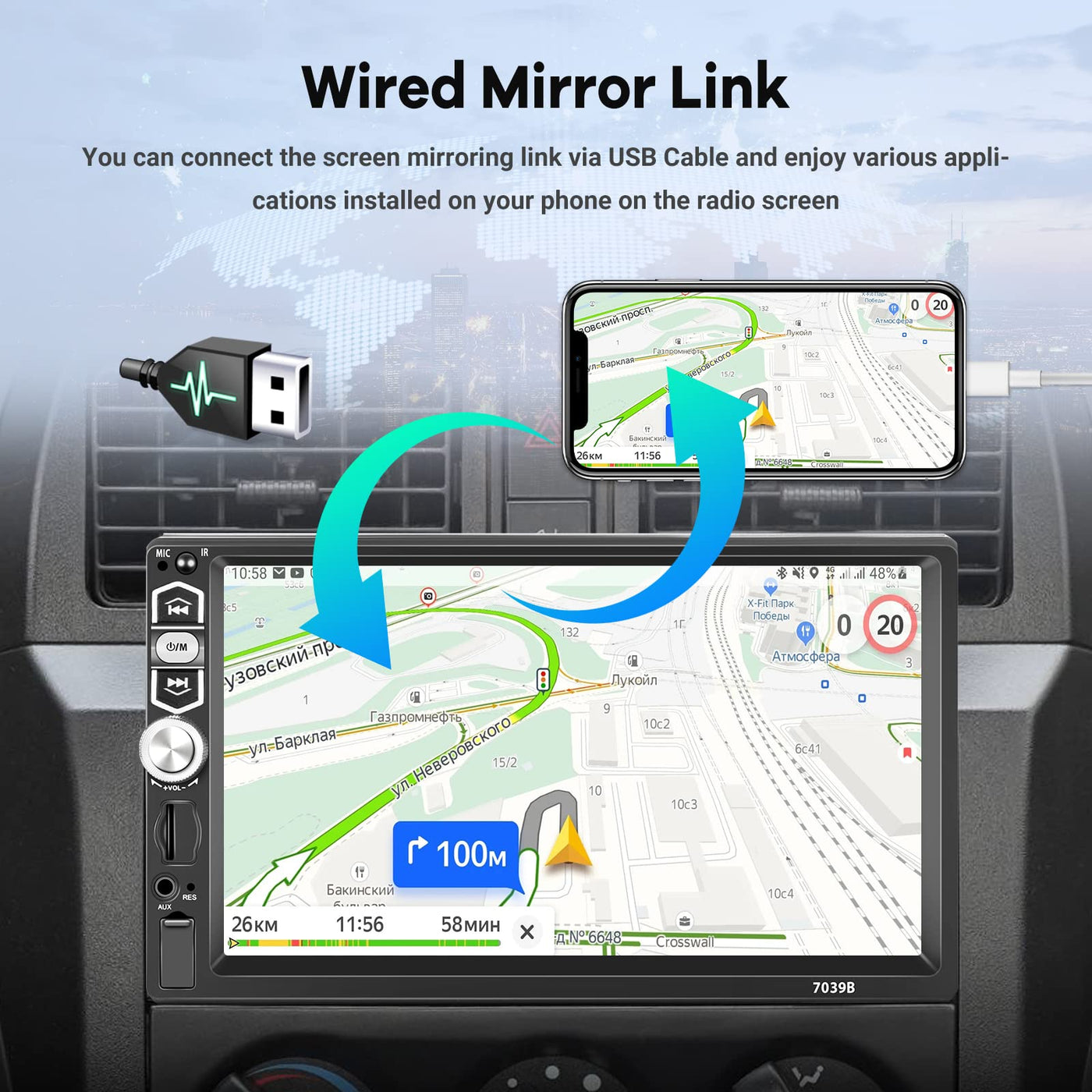 Single Din Car Stereo With Wired Carplay & Android Auto, 7 Inch Touch Screen 1 Din Radio, Mirror Link/1080P/Bluetooth/Swc/Fm Rad