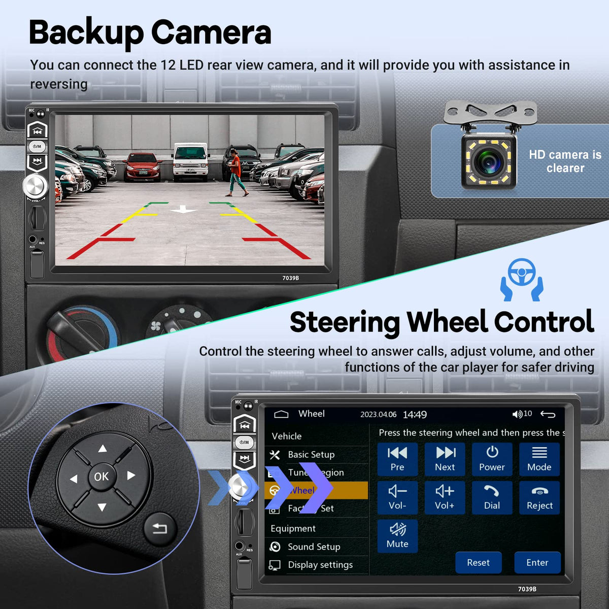 Single Din Car Stereo With Wired Carplay & Android Auto, 7 Inch Touch Screen 1 Din Radio, Mirror Link/1080P/Bluetooth/Swc/Fm Radio+ Backup Camera+ Mic