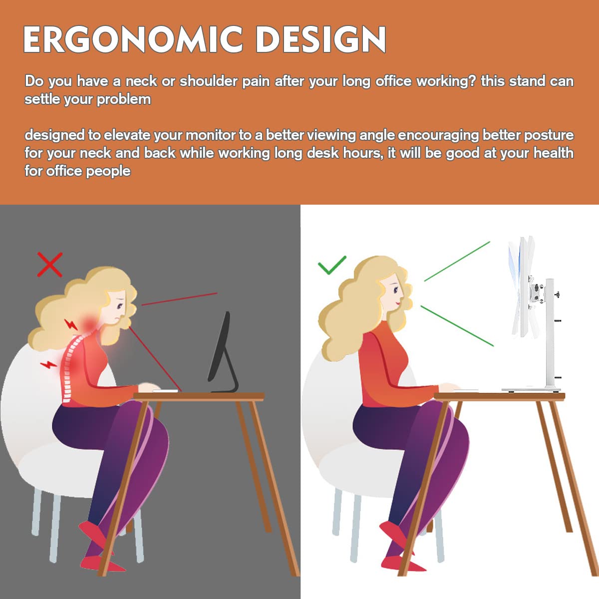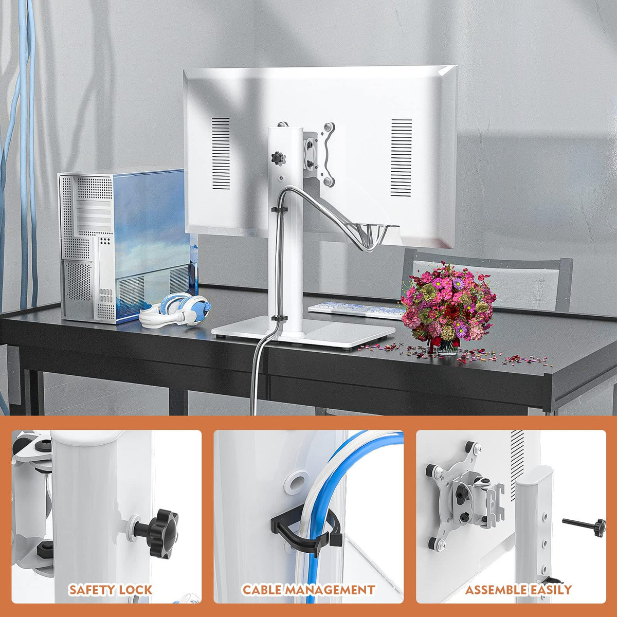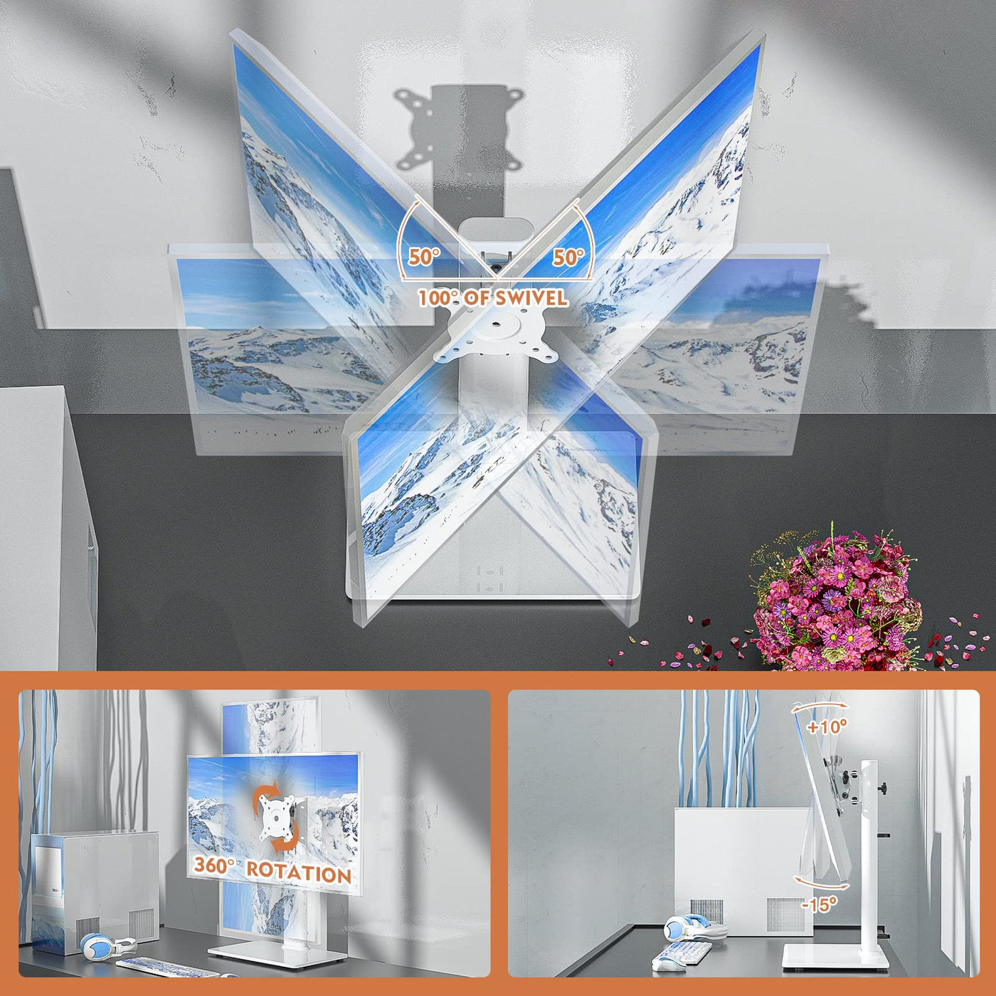 Single Lcd Computer Monitor Free Standing Desk Stand Riser For 13 Inch To 32 Inch Screen With Swivel, Height Adjustable, Rotatio