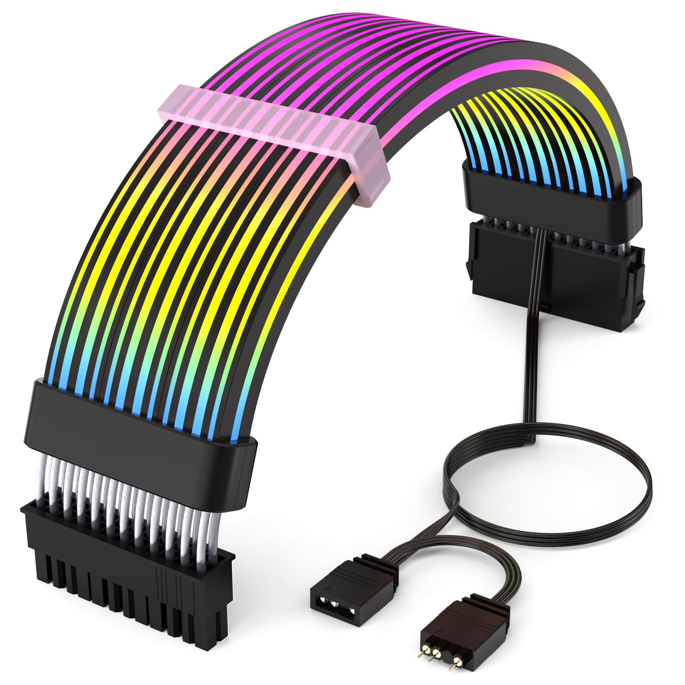 Sirlyr 24 Pin Rgb Cable,Rgb Psu Cables Extensions 5V 3Pin Addressable Argb Motherboard Power Supply Fit Black Pc Case Build Bl