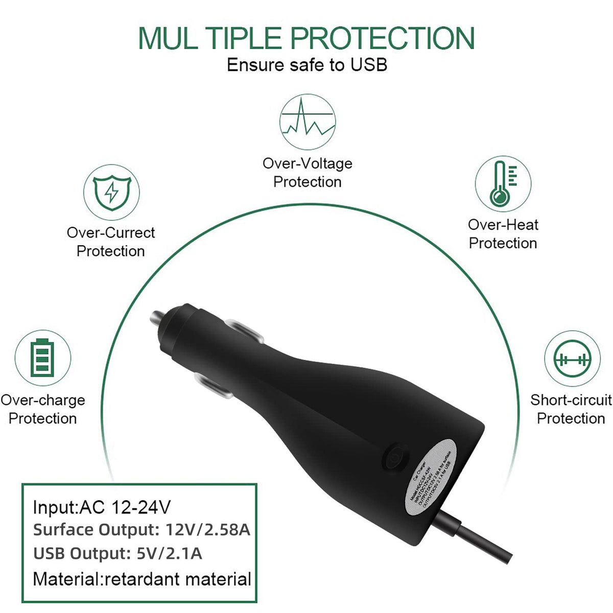 Sisyphy Surface Car Charger With Usb Charging Port, Total 42W 12V 2.58A Power Supply, Compatible For Microsoft Surface Pro7 + Plus Pro6 Pro5~3 Surface Go 1/2 Laptop 1/2/3 Surface Book
