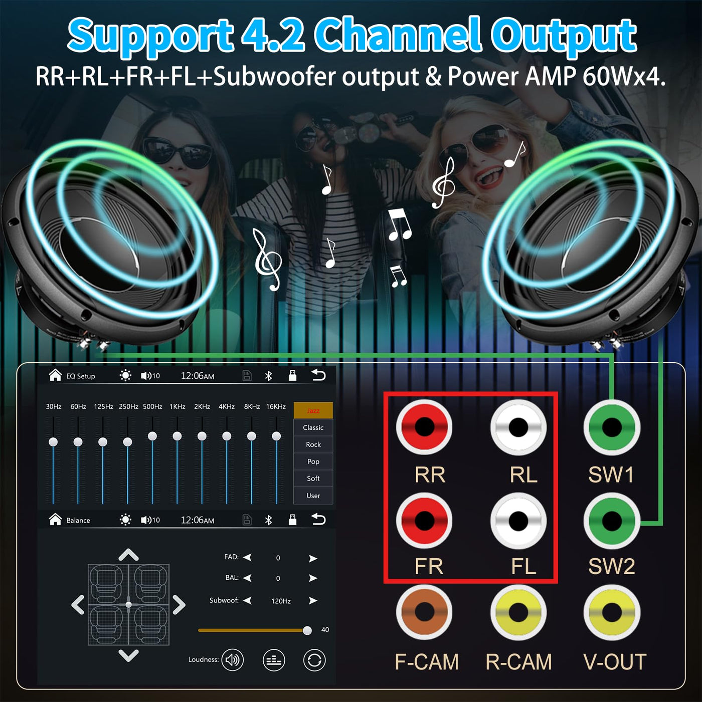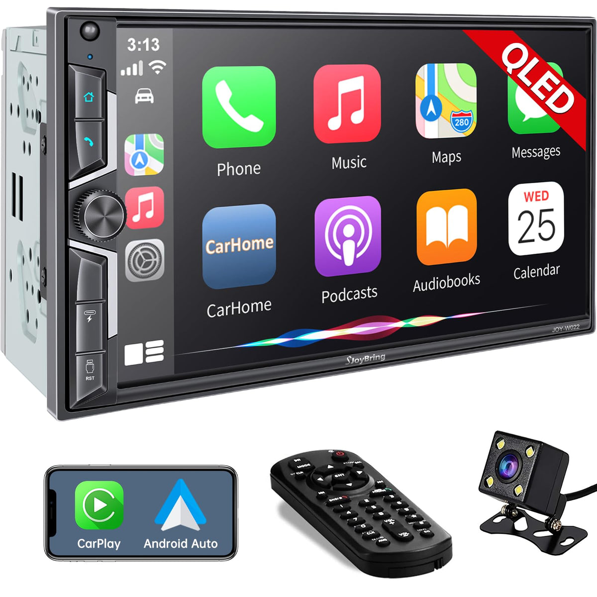 Sjoybring Wireless Double Din Car Stereo With Carplay, Android Auto, Qled Touchscreen, Bluetooth, 4 Channel Rca, 60W*4 High Powe