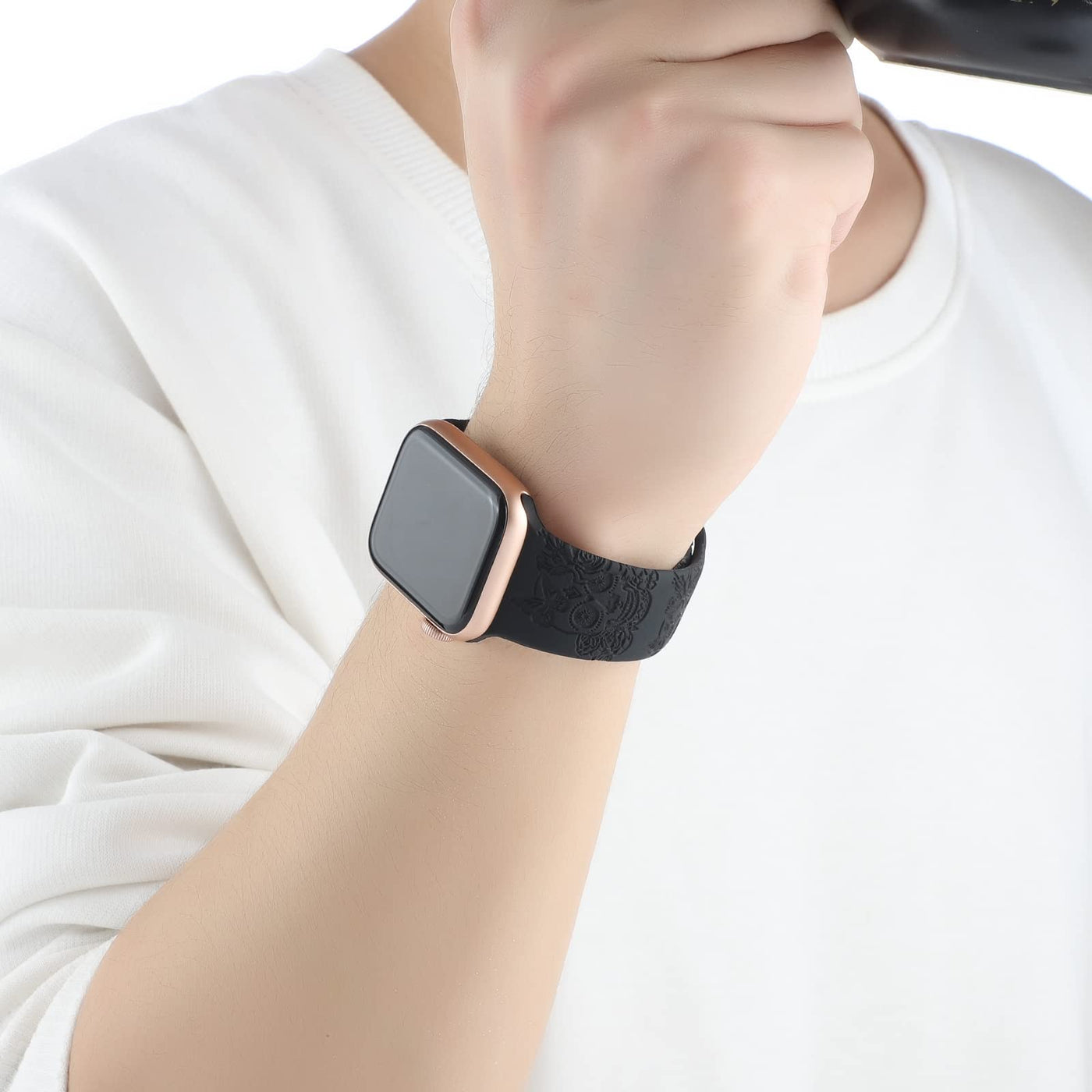 Skull Engraved Design Sport Bands Compatible With Apple Watch Iwatch Bands 40Mm 38Mm 41Mm, Flower Pattern Laser Printed Soft Sil