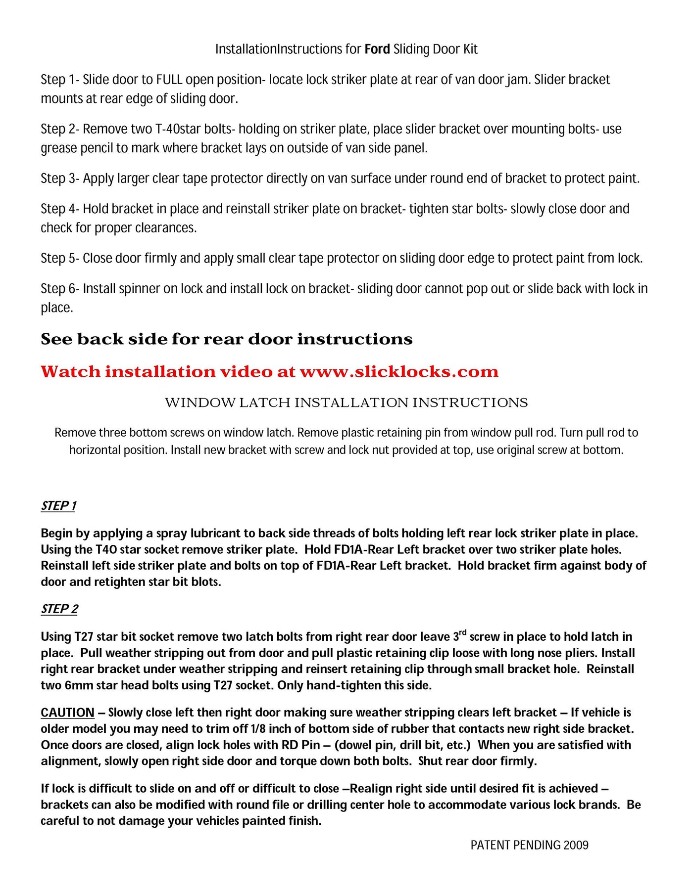 Slick Locks Ford Sliding Door Kit Complete With Spinners, Weather Covers & Locks,Silver