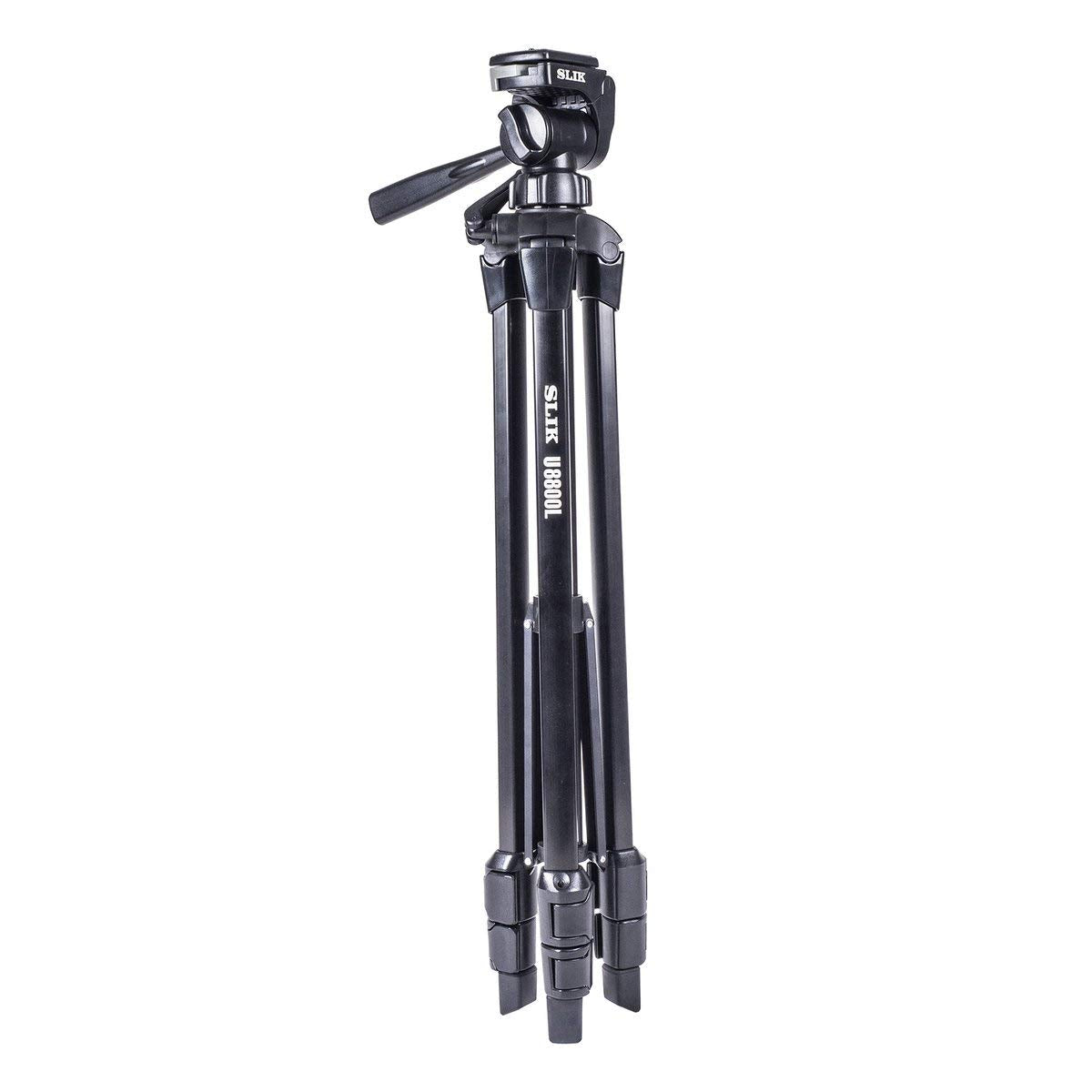 At Just Over 5 Feet 6 Inches When Full Extended, The Slik U8800L Is The Tallest In The U Series Of Tripods. These U Series Tripods Are Popular The World Over With Photo Enthusiasts And People Who Just Love Taking Pictures. The 66. 7 Inch Maximum Height Makes Eye-Level Easily Within Reach And Many People Will Find They Don�T Even Have To Raise The Center Column. A Smooth Moving �Fluid Effect� Pan Head With One Handle Operation Makes Moving The Positioning The Camera Quick And Simple. The Nicely Sized Quick Release Plate Makes Attaching The Camera To The Tripod Even Faster. Other Features Of The Slik U8800Linclude Speed Release Lever Locks For Extending And Retracting The Legs. Hard Rubber Foot Pads Provide Secure Footing On Almost Any Surface. Regardless If You Use A High-End Point-And Shoot, Mirrorless Camera Or Light-Weight Dslr With The Kit Lens The Slik U8800L Can Handle It.