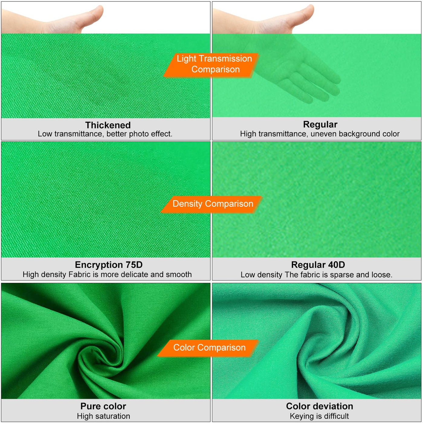 1. The New Material Is Durable And Not Easy To Wrinkle, More Vertical Stretch, High-Density Polyester Cotton Material 2. The Color Is Pure, Picture Cutout Is Cleaner, And The Post-Production Is Easier 3. 75D Density Increasing, Low Light Transmission, Better Shooting Effect 4. The Seaming Process Is More Durable, And The Fine Workmanship Does Not Fall Off The Wire 5. Matting Treatment, The Surface Is Textured To Reduce Reflections And Suppress The Appearance Of Moire Texture In Shooting And Recording 6. Can Be Ironed And Washed, The Color Will Not Fade After Washing, Hang Iron Without Crease 7. Perforated Design, It Is More Convenient To Use With Background Bracket