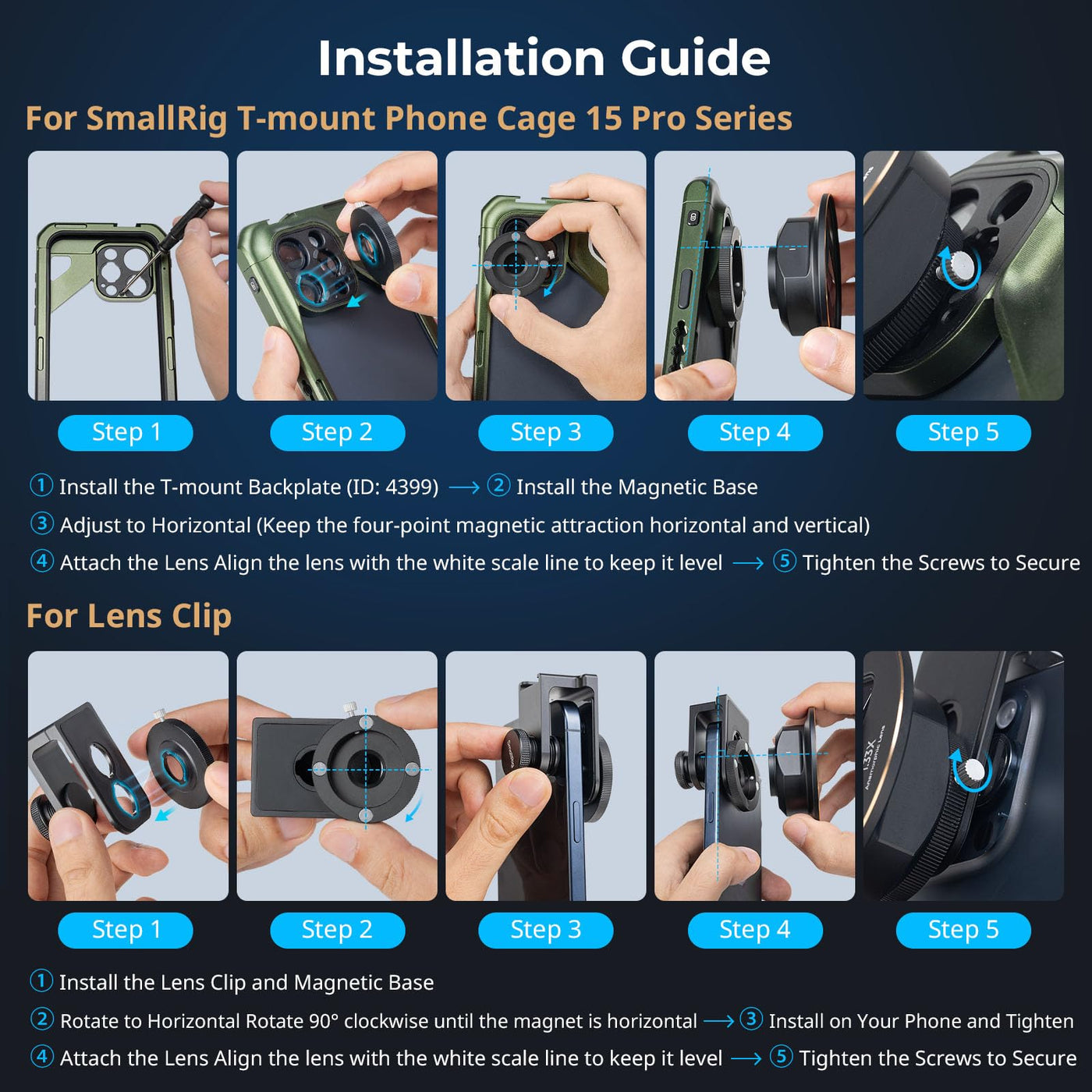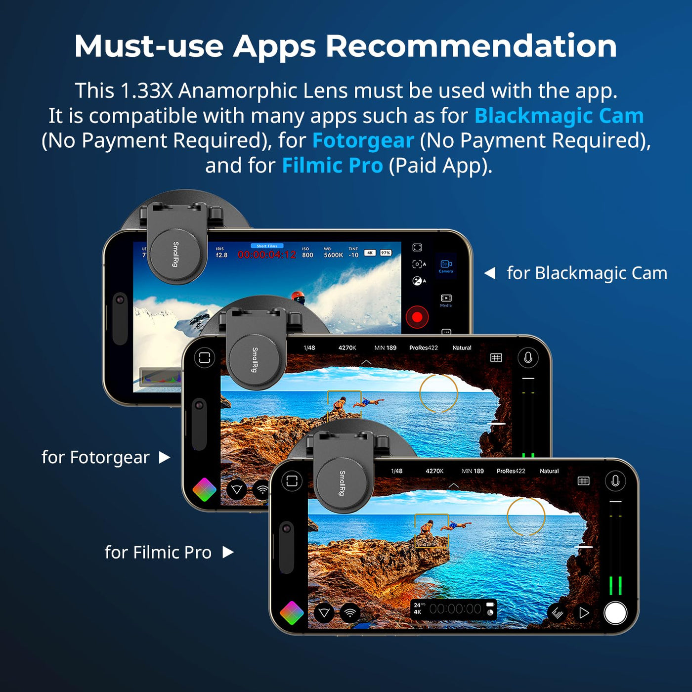 Smallrig 1.33X Anamorphic Lens For Mobile Phone, 2.4:1 Wide Screen Deformation Filmmaking Lens With T-Mount, Phone Cinematic Len