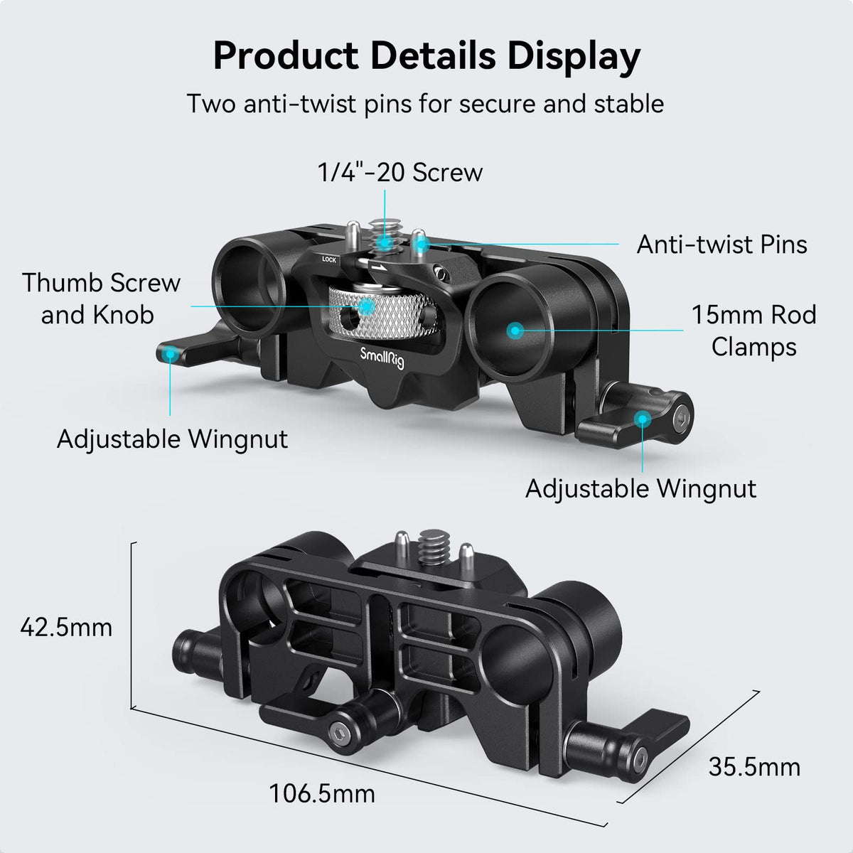 Smallrig 15Mm Lws Rod Support, Ajustable And Anti-Twist Design, Compatible For Smallrig 3196/3680/ 3556/3641/ 3645 Matte Box To