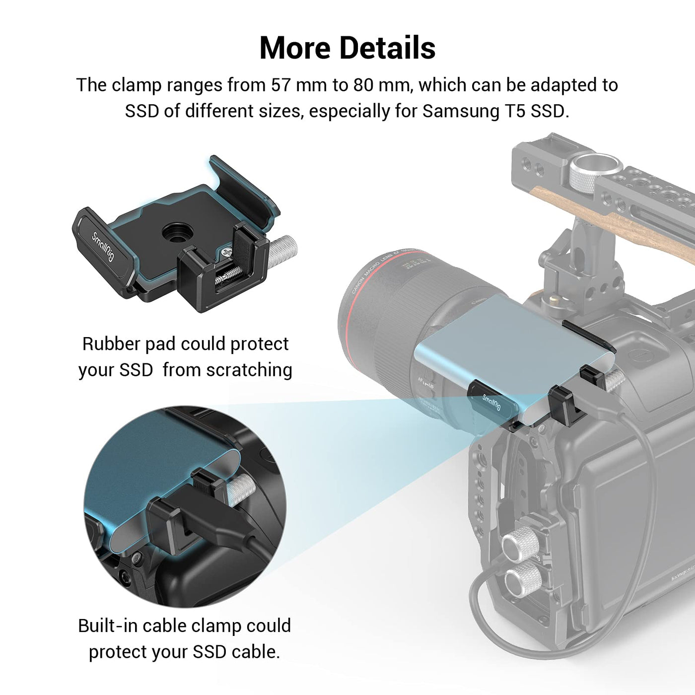 Smallrig Ssd Mount Bracket Ssd Holder For Samsung T5/T7 Ssd, Sandisk Ssd, Sandisk Ssd T5/T7, Compatible Cage For Bmpcc 6K Pro -