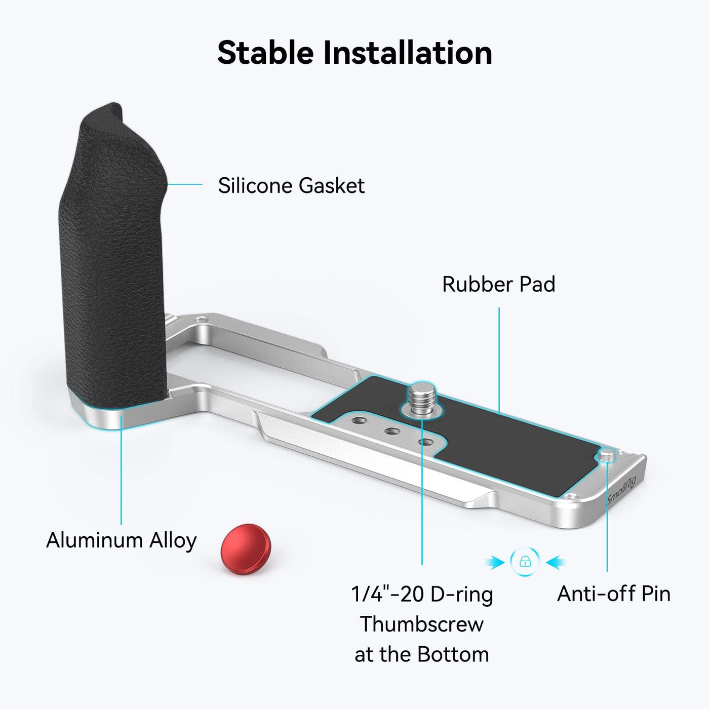 Key Features: 1. Dedicated L-Shape Grip For Fujifilm X-T5; 2. Ergonomically Designed Silicone Grip Improves Grip Experience; 3. Lightweight, Compact And Portable, Weighs Only 79G; 4. Easily Locks The Camera Via A 1/4-20 D-Ring Thumbscrew At The Bottom; 5. A Included Shutter Button For A Better Touch. Smallrig L-Shape Grip For Fujifilm X-T5 4136 Is Designed To Improve Your Grip On The Camera. With The Same Texture And Color, It Matches Perfectly. The Grip Easily Locks The Camera Via A Mere 1/4-20 D-Ring Thumbscrew At The Bottom, Where Multiple Accessory Mounts Are Included Too. They Include An Quick-Release Plate For Arca-Swiss Tripods, Three 1/4-20 Holes For Tripods Or Manfrotto-Type Plates, And A Strap Slot For Hand Strap 3848. The Grip Features A Slim And Compact Baseplate That Weighs Only 79G. It Also Comes With A Shutter Button To Enhance Touch Compatibility For Fujifilm X-T5 In The Box: 1 X L-Shape Grip 1 X Shutter Button Specifications Product Dimensions: 133.2 X 58.1 X 69Mm Package Dimensions: 184 X 101 X 57Mm Product Weight: 76G5G Package Weight: 137.2G5G Material(S): Aluminum Alloy, Silicone