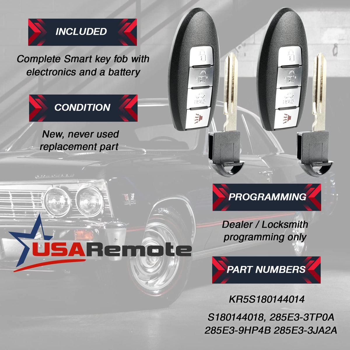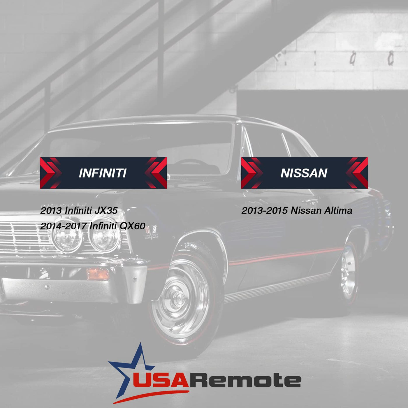 Replace Your Lost Or Broken Keyless Entry Key Fob Remote With A Usaremote Fob. Fits P/N: Kr5S1801440142013 Infiniti Jx352014-2016 Intiniti Qx602013-2015 Nissan Altimathis Is A Replacement Aftermarket Part.