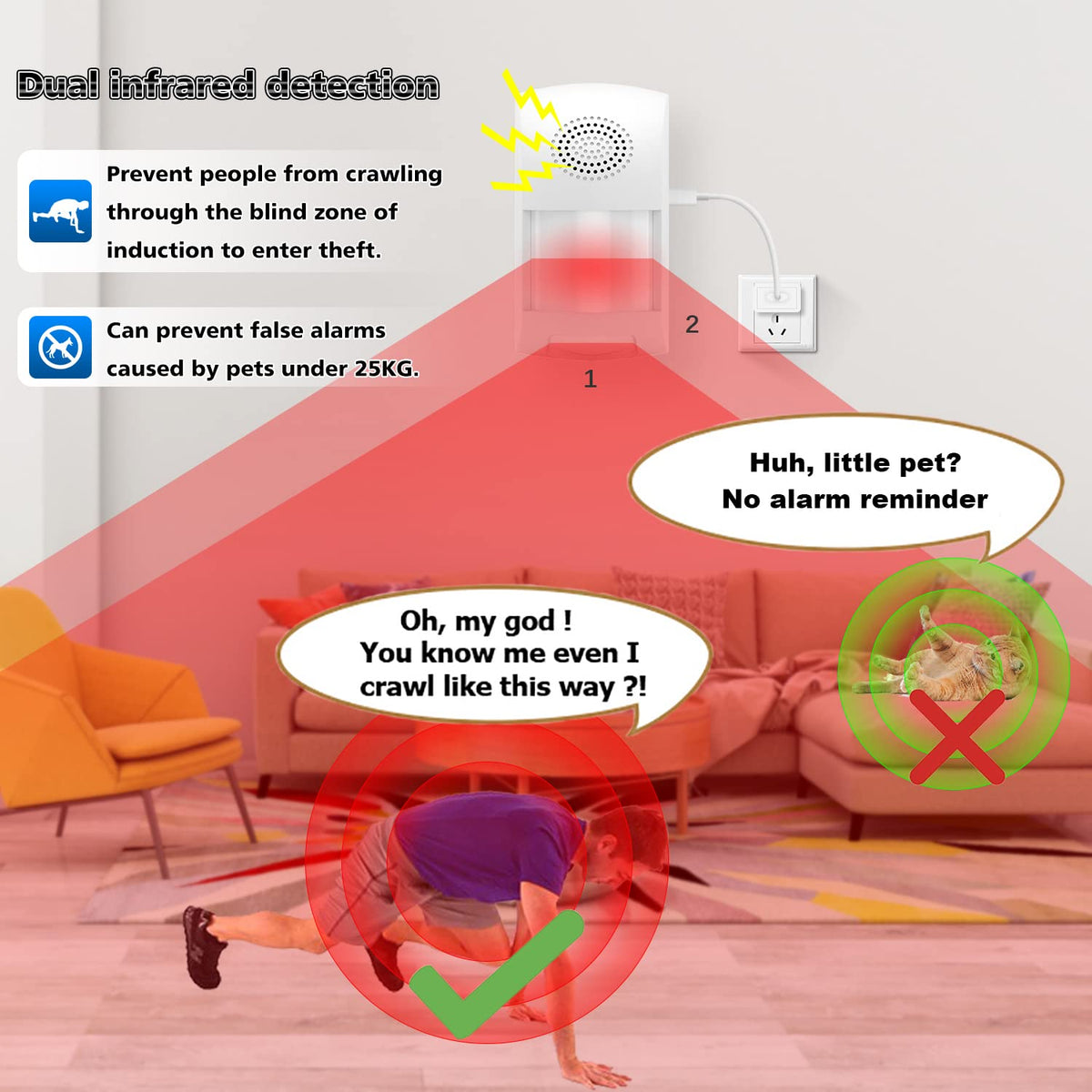 Smart Motion Sensor, Wifi Wireless Security Alarm, Home Security Pir Motion Detector With Free App Alerts, 110Db Sound And Light
