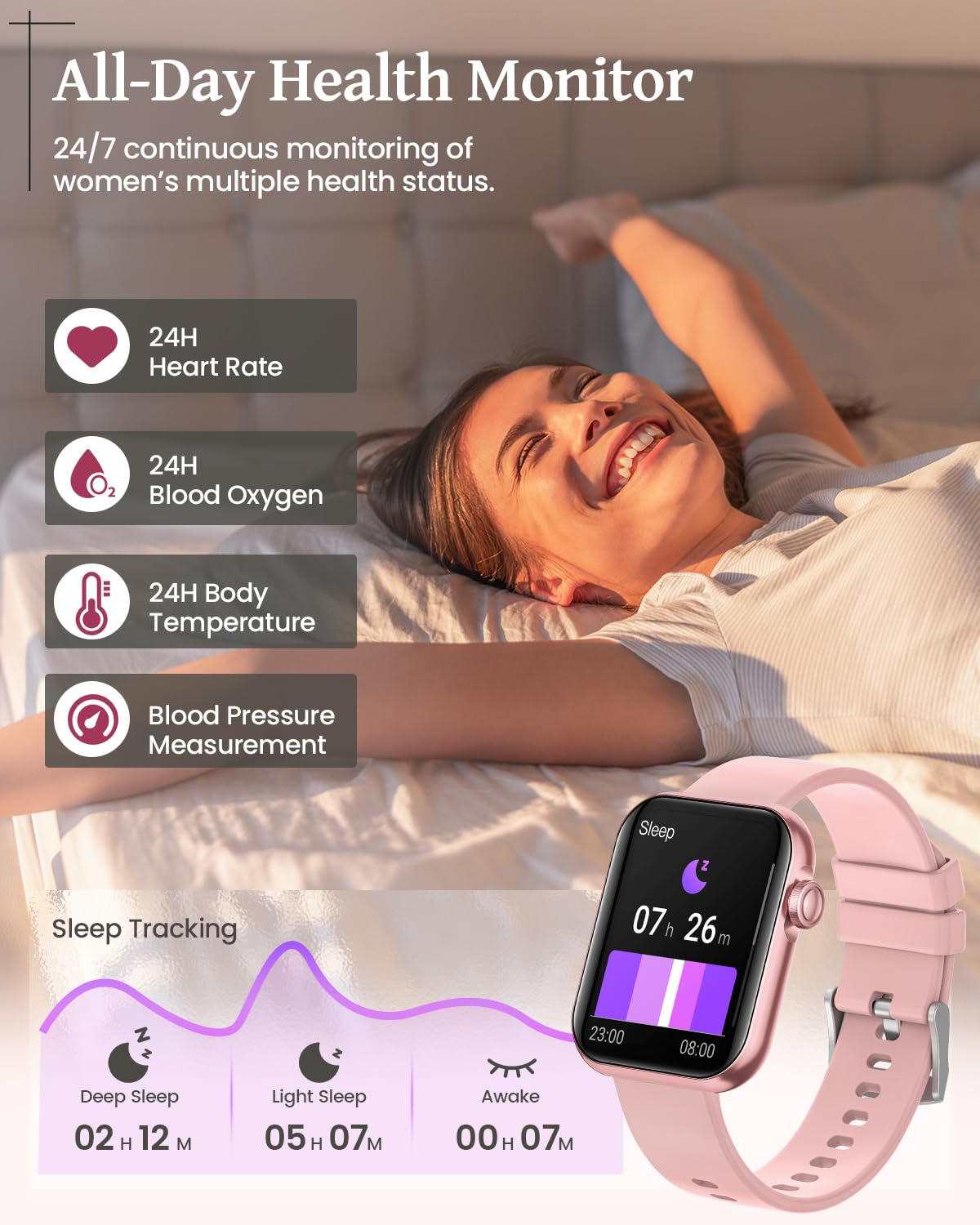 Smart Watch, 1.85'' Hd Samrt Watches For Women, Fitness Tracker With Blood Pressure/Heart Rate/Sleep Monitor, Bluetooth 5.3 Smar