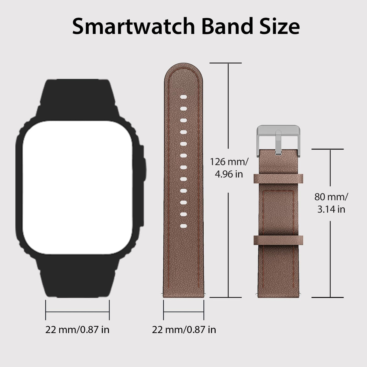 This Smartwatch Bands Compatible With Amaztim M2/T2, Compatible With Sunkta K-52, Compatible With Foxbox K-52, Walkerfit M6 Ultra, A1 Pro, A1 Max, Compatible With Kospet Tank M2/T2, Compatible With Esfoe K-52, Compatible With Lige K-52, Compatible With Podoeil K-52, Compatible With Pureroyi C20Pro, Compatible With Meoonley C20Pro, And Compatible With Other Smartwatches With A Bandwidth Of 22Mm/0.87 In. Note: Not Compatible With 20 Mm/0.78 In Band Width Smartwatches. Black Smart Watch Band And Leather Smart Watch Band