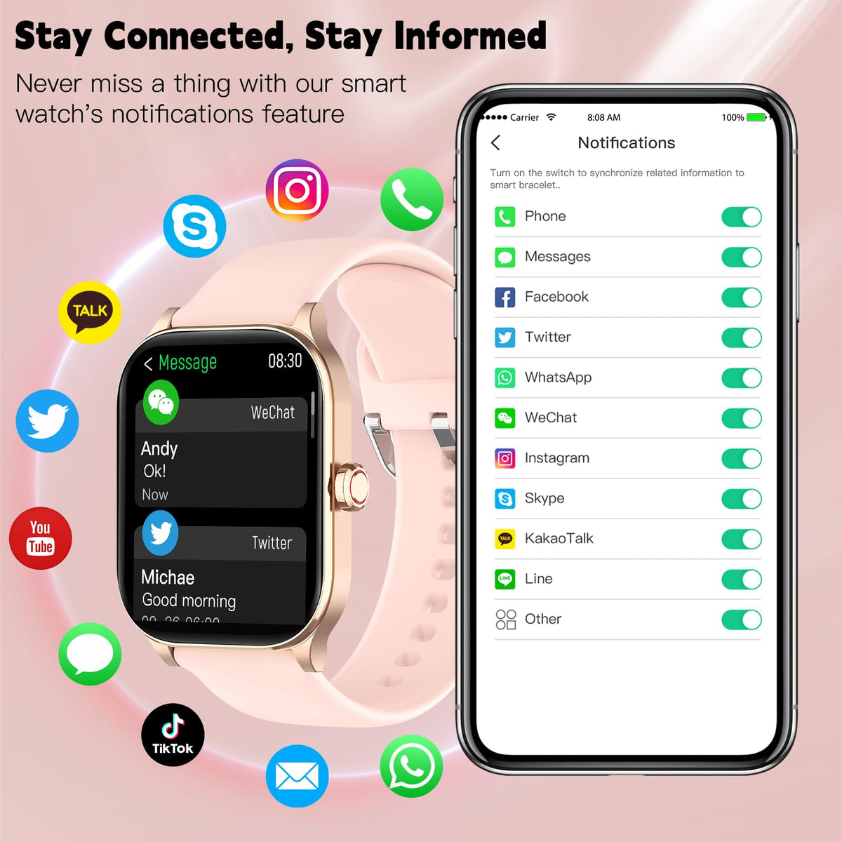 Smart Watch For Men Women: Elevate Your Fitness Journey! The Smartwatch Seamlessly Integrates Into Your Active Lifestyle, Offering A Plethora Of Features To Enhance Your Fitness Journey. Smartwatch Is A Versatile Companion That Helps You Stay Motivated And On Track With Your Fitness Endeavors. Whether You 'Re A Seasoned Athlete Or Just Starting Your Journey To A Healthier Lifestyle, This Smartwatch Is An Invaluable Tool For Achieving Your Goals. Great Watch For Looks, Features, Ease Of Use And Set Up Feature: Make/Answer Calls, Messages Notification(Facebook, Whatsapp, Instagram, And Twitter,Etc), Heart Rate/Spo2/Sleep/Stress Monitor, Pedometer, Weather Forecast, Drinking Water & Sedentary Reminder; Music Player, 100+ Sports Modes, Ip68 Waterproof, 100+ Watch Face & Customize Stylish Ui, Time Display, All-Day Activity Tracker, Distance/Steps/Calories Tracker, Daily Workout Memory, Voice Assistant, World Clock, Relaxing Game, Breathe, Timer, Calendar, Alarm Clock, Stopwatch, Flashlight, Remote Camera, Find Phone, Support Multiple Languages And So On Specification: Screen: 1.85 ''/2.01 '' Hd Full Touch Screen Bluetooth Version: Bluetooth 4.0 Compatibility: Android4.4 (Contain), Ios8.0 (Contain) Above Battery Capacity: 350Mah Li-Ion Battery (Built-In) Working Time: 5-7 Days Standby Time: 35+ Days Above Package Included: 1 X Bluetooth Smart Watch 1 X Charging Cable 1 X User Manual 1 X Screen Protector