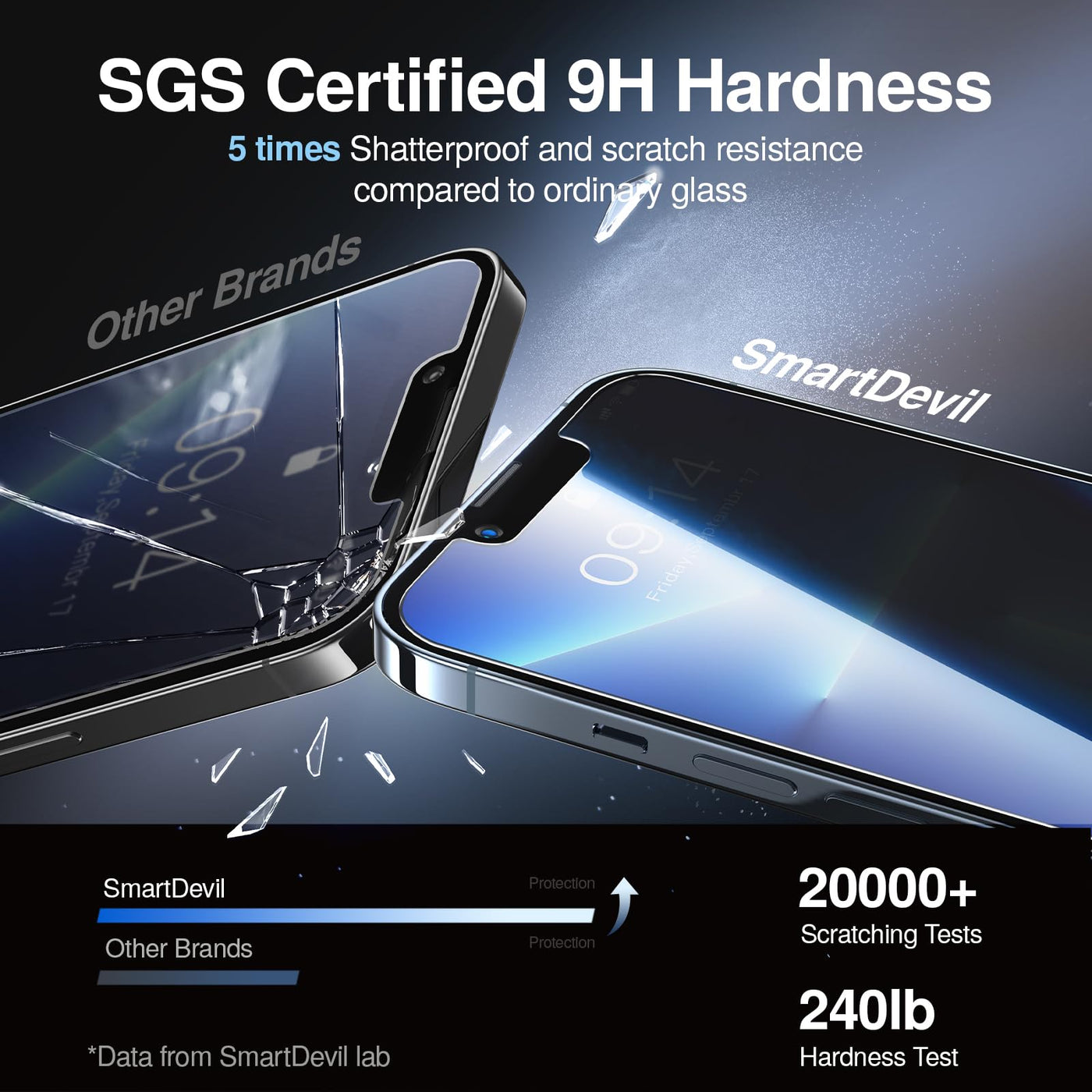 Smartdevil 2 Pack Privacy Screen Protector For Iphone 13/13 Pro/14 (6.1 Inch) With Easy Installation Frame, 9H Anti Spy Privacy