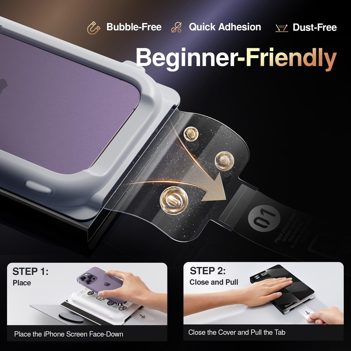 Q: How do I install the SMARTDEVIL Privacy Screen Protector?A: Installation is easy: first, place the screen protector facing down and press it onto the pull tab. Then, close the cover and hold it down to secure it before fully pulling out the tab for a bubble-free application.